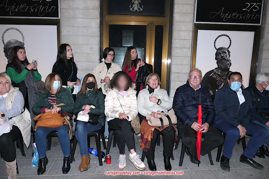 Pedro Marina Cartagena (San Pedro) ha vuelto a tener su acto previo junto al mar del interior del Arsenal, con homenaje a los caídos, para después dirigirse a la casa del almirante, que le ha concedido un permiso fugaz, pues tras la procesión del miércoles deberá regresar a la que es su casa oficial, por orden ministerial, desde 2011, aunque mucho antes de hecho. La salida por el pórtico del Arsenal ha sido el momento más esperado y de mayor júbilo popular.