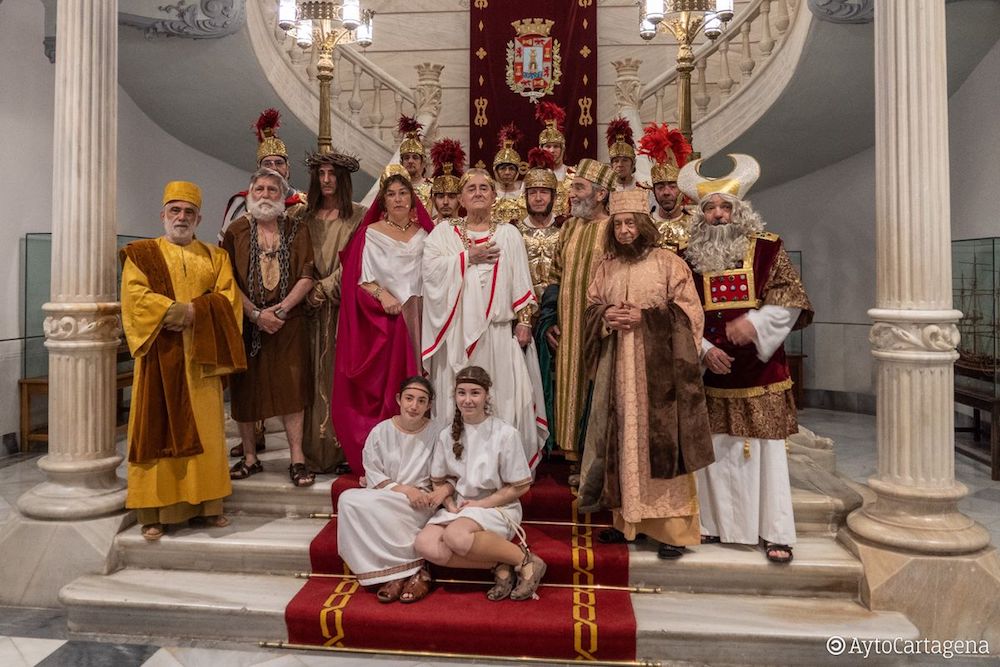 Esta vez, Poncio Pilatos no pudo el contenido de la palangana (donde se lavó las manos) al público, como es tradicional. Fue el cielo el que descargó la lluvia sobre intérpretes y espectadores a los pocos minutos de empezar la representación de la tarde del Miércoles Santo en el escenario de la plaza del Ayuntamiento de Cartagena, por lo que hubo que suspender.