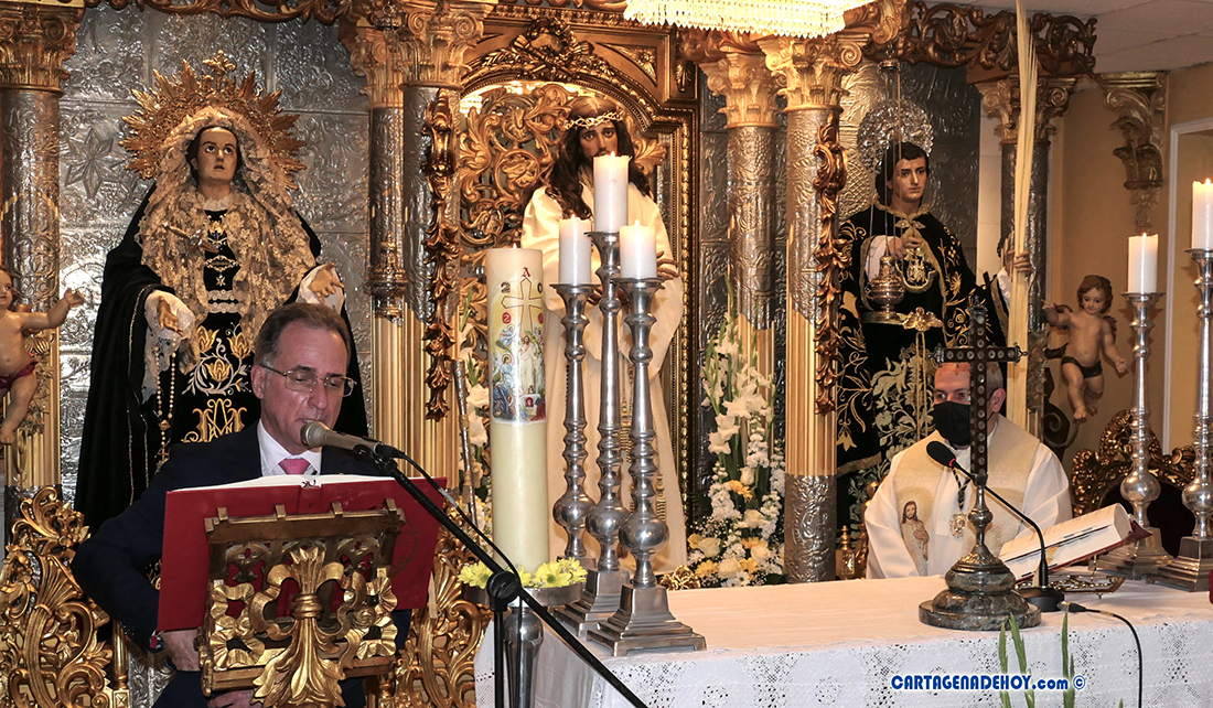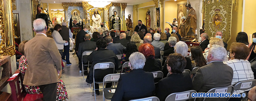 Antes de este acto, se ha celebrado una Solemne Eucaristía, oficiada por el Capellán de la asociación Canónica del Santísimo y Real Cristo de la Divina Misericordia, Rvdo. D. Pedro García León, al que acompañaban el Capellán de Cartagena por la Caridad, Rvdo. D. Lázaro Gomáriz López, y el Capellán Mayor de Cartagena y Párroco Castrense de la Iglesia de Santo Domingo D. Francisco Muñoz Moreno.