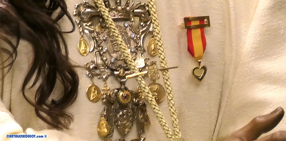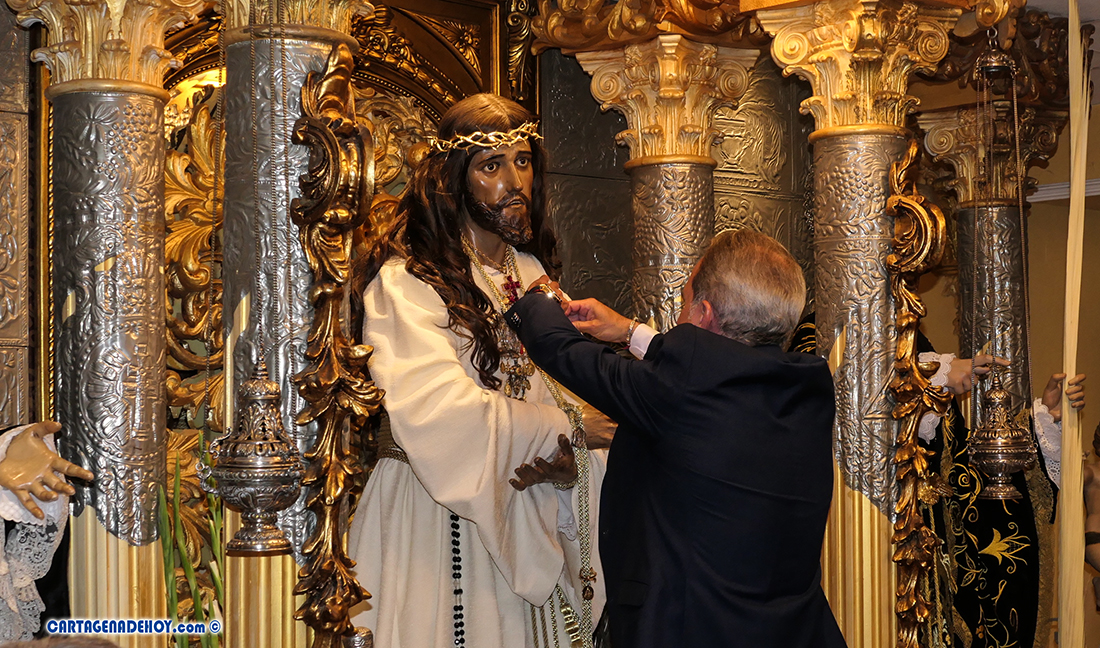 Antes de la imposición de la medalla de oro por parte del presidente, el Capellán de Cartagena por la Caridad, la ha bendecido.