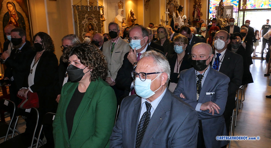 Asimismo, entre el más del centenar de personas que dejaron pequeña la capilla, se pudo ver a distintas personalidades como, el Alcalde la Unión. Pedro López Milán, la Concejala de Movimiento Ciudadano en el Ayto. de Cartagena, María Dolores Ruíz, el presidente de la Asociación Caballeros de Lepanto, Tomás Martínez Pagán, Pepe Cortado, presidente de Jesús Nazareno de La Unión, Juani Carrascosa, Camarera del Cristo de la Misericordia, Ginés Fernández, Secretario de la Junta de Gobierno del Hospital de Caridad, Juan Gómez Ayala, presidente del Banco de Alimentos Región de Murcia- Cartagena, los empresarios Diego de Haro, José Pascual Alonso y Juan Moreno Boluda, entre otros muchos.