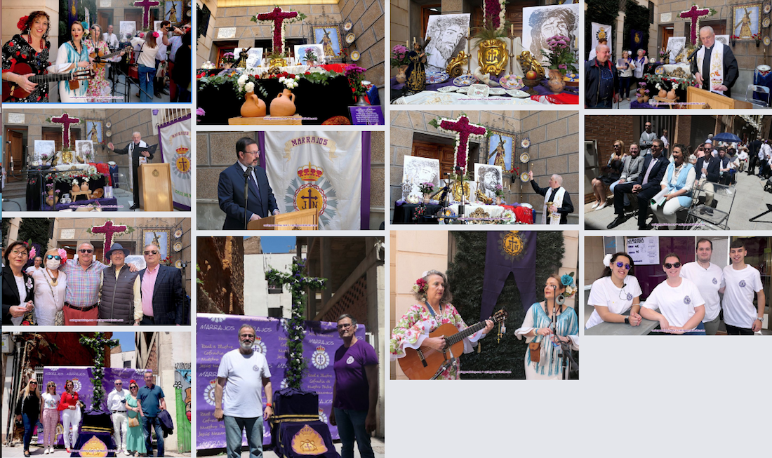 La Cofradía Marraja, pionera en la celebración de las cruces de mayo, monta doblete este año con la cruz instalada en el Callejón de Bretau, donde el capellán ha efectuado la bendición y Beatriz Saura ha ofrecido el pregón, y la novedosa cruz de la calle Cuatro Santos frente a lo que será su museo procesionista.