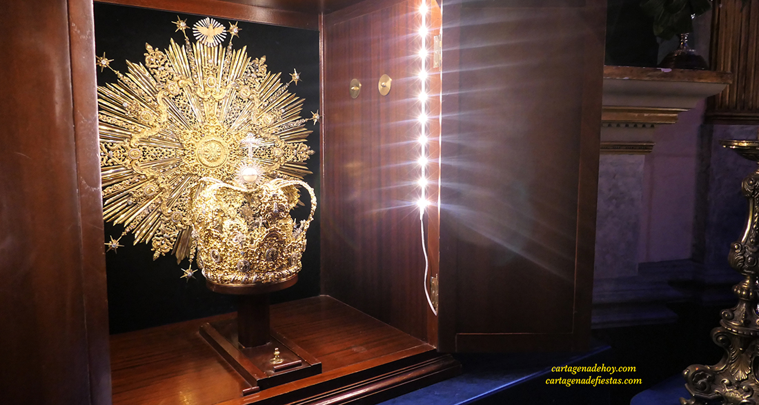 La Cofradía de Jesús Resucitado, por su parte, pudo una iluminación de embrujo en su capilla de Santa María, a la que accedían los visitantes por la calle Campos. La muestra 'Porta Coeli' estaba presidida por la imagen de la Virgen del Amor Hermoso en una representación de su primitivo trono, cuando aún no llevaba el palio. Alrededor se distribuían las piezas más significativas de su ajuar, como la corona, joyas y túnicas.