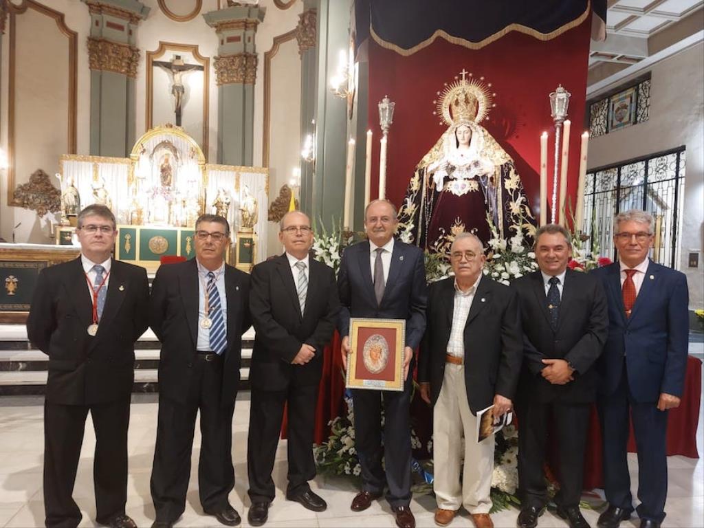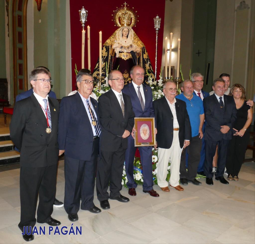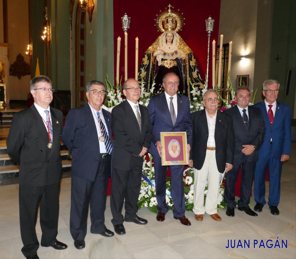La revista de la agrupación california de María Santísima del Rosario es un homenaje a Antonio Navarro Zamora, quien se definió como un "aprendiz de poeta", pero que ha escrito numerosas poesías dedicadas a la Virgen, que ahora quedan recogidas en esta publicación. En la imagen se observa al ejemplar procesionista en el centro, junto debajo de la imagen. GALERÍA DE FOTOS (pinchar aquí)