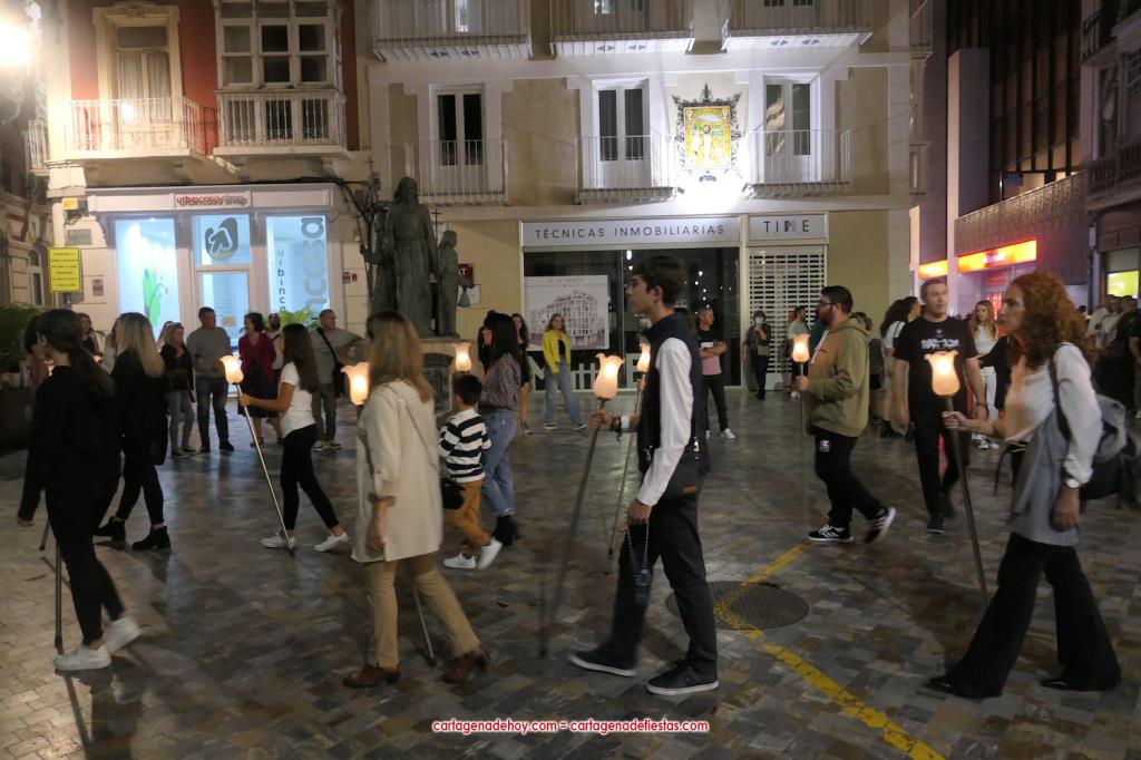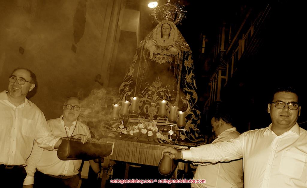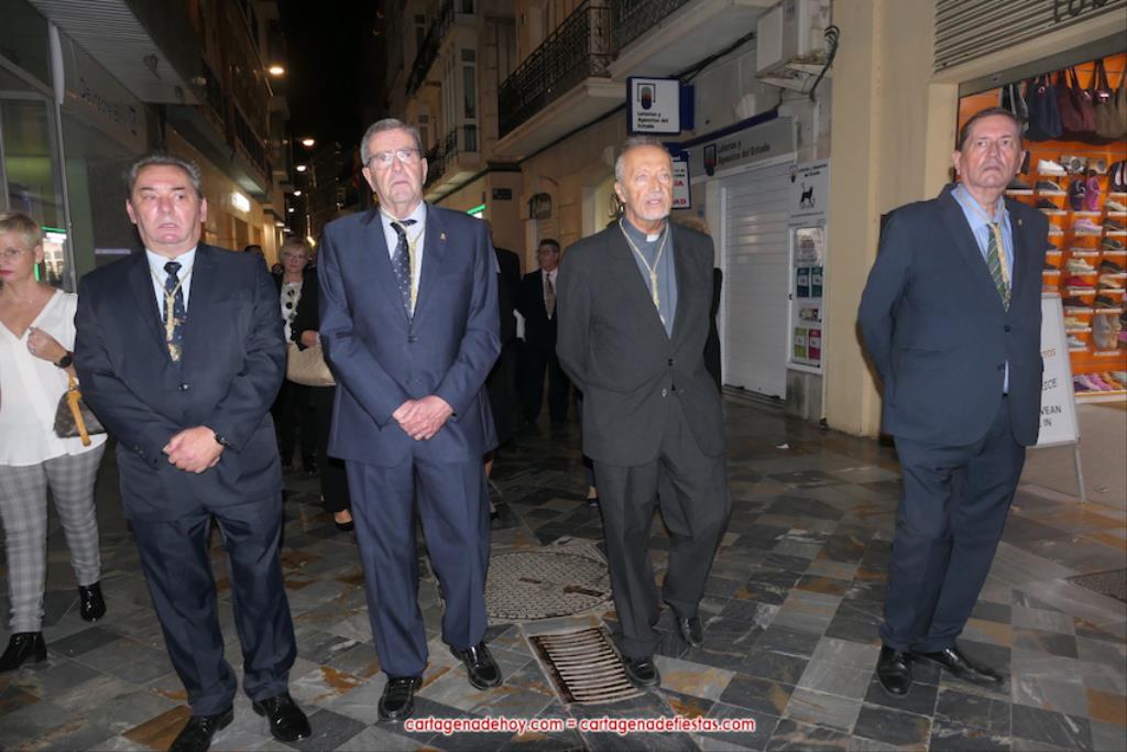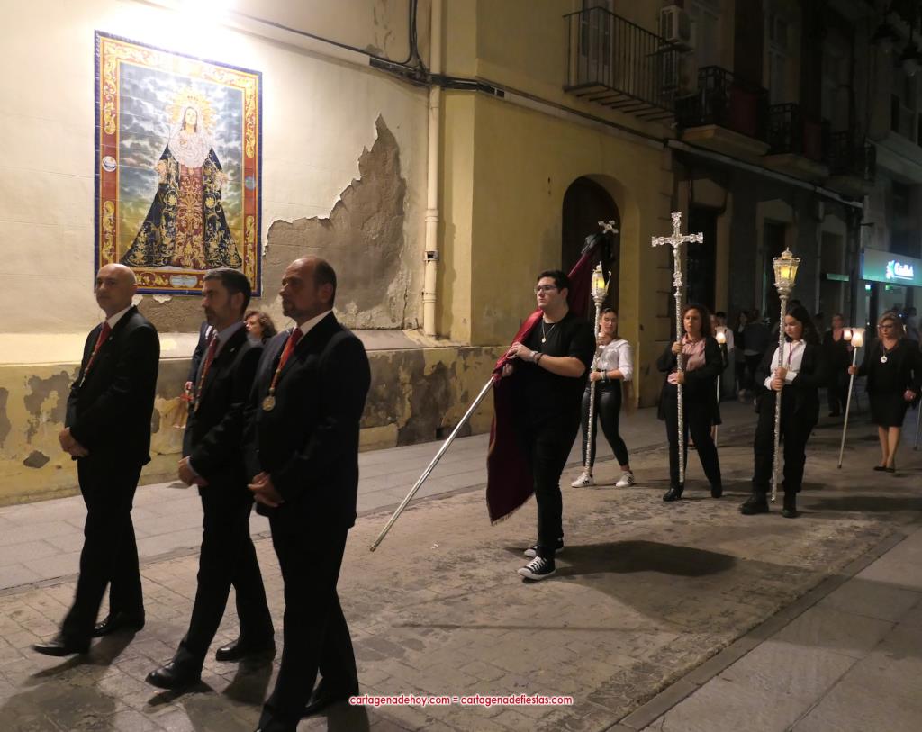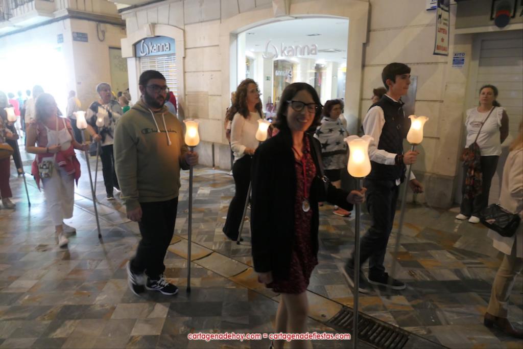 Este año hemos recuperado la normalidad y los desfiles regresaron en Semana Santa y en otras fechas en plenitud, pero resulta que hasta hace sólo un año la situación era distinta. Quizás porque la memoria es selectiva, para muchos parece que la crisis pandémica fue hace tiempo, pero en absoluto, sólo ha pasado un año desde que Cartagena volvió a ver a una imagen salir en procesión, lo que no sucedía desde el año 2019. El virus sigue ahí, pero ahora estamos mucho más preparados para rechazarlo, con lo que anoche todo estuvo centrado en acompañar a la Virgen del Rosario, lo que hicieron numerosas personas de dispares edades, abriendo paso la cruz y el tercio de hachotes con velas encendidas en una marcha en la que Francisco de la Cerra fue el encargado de ir dando lectura al rosario.