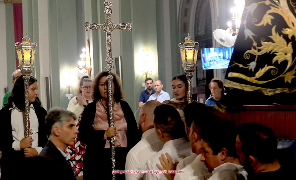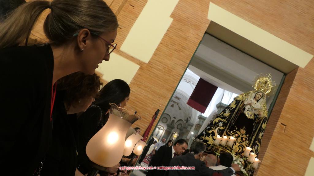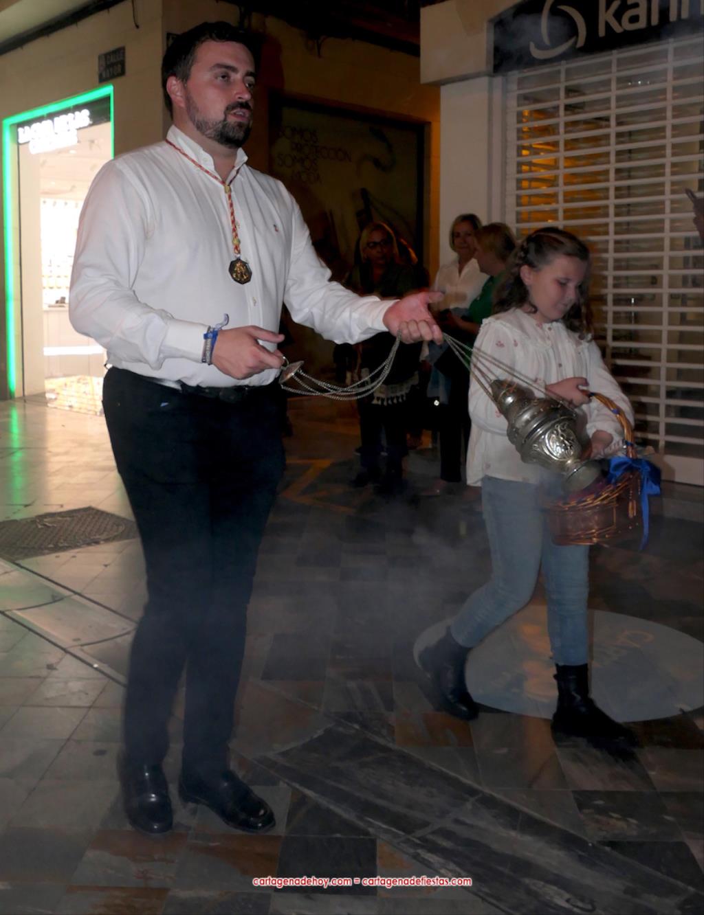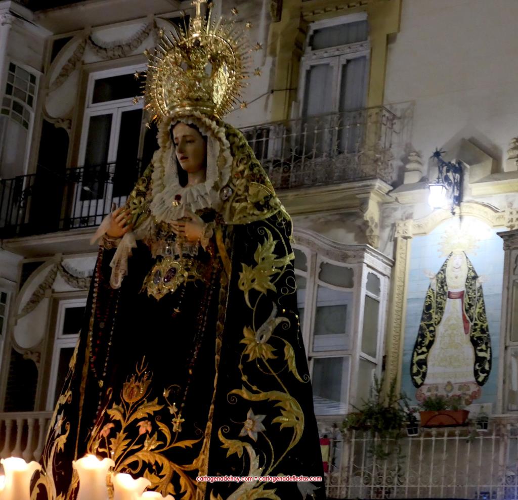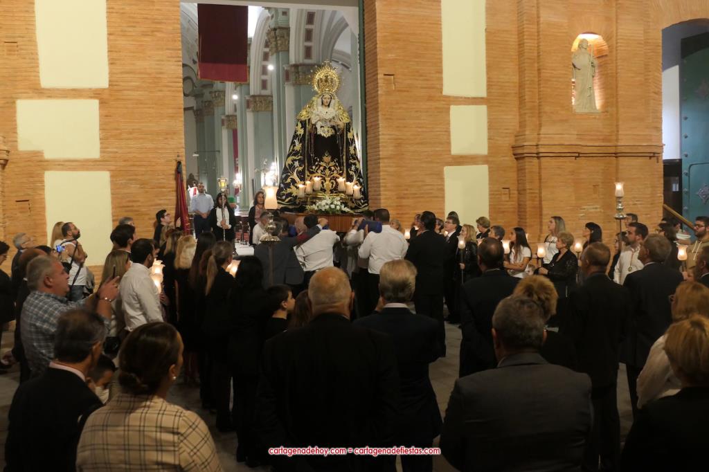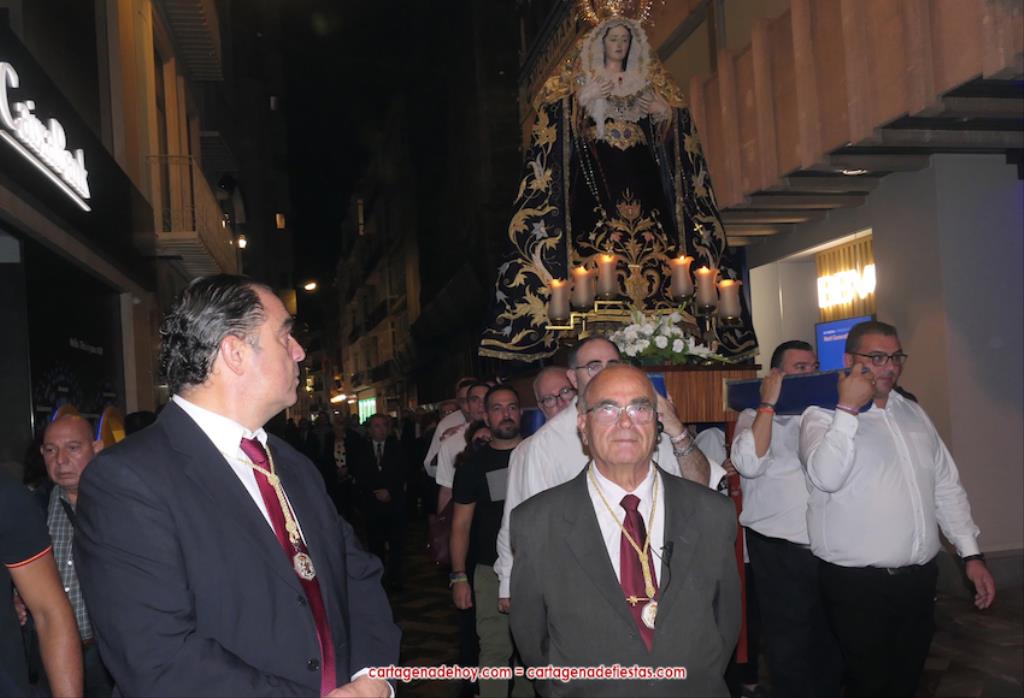 María Santísima del Rosario salió anoche por el entorno de Santa María arropada por un numeroso número de fieles y por las llamas de los hachotes al igual que hizo en octubre de 2021, cuando se convirtió en la primera imagen que desfilaba por Cartagena tras la crisis pandémica. GALERÍA DE FOTOS (pinchar aquí)