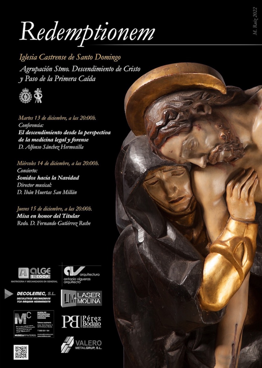 El colectivo marrajo desarrolla tres actividades de diferentes contenidos con el ‘Redemptionem’ desde hoy y hasta el jueves, con epicentro en la capilla marraja a partir de las 20 horas. La primera cita es una perspectiva forense de la escena del descendimiento de Jesús de la cruz. Mañana hay concierto y se cierra con la misa.