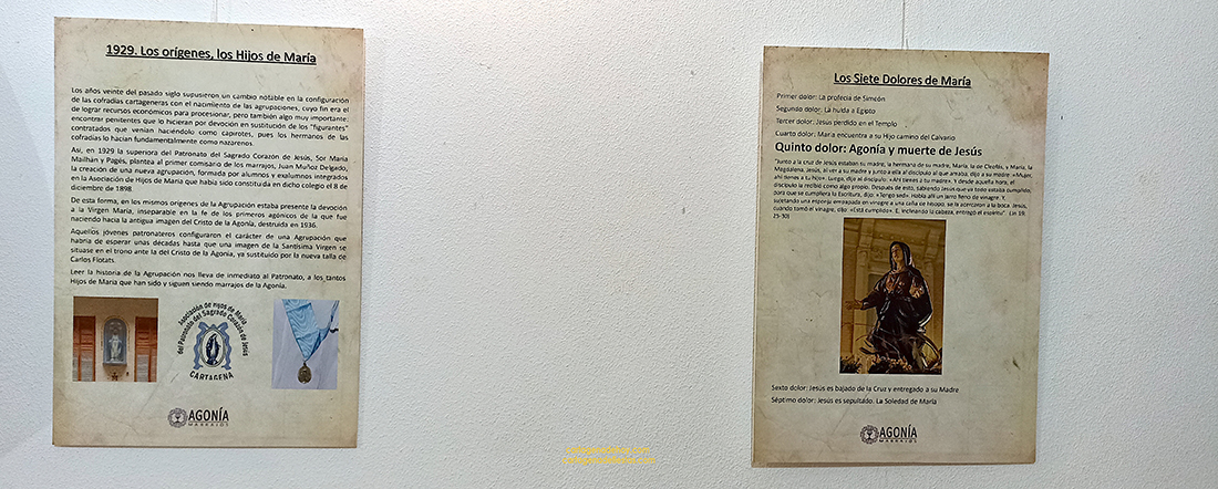 La exposición se completa con diversos enseres relacionados con ambas imágenes además paneles informativos que explican, de forma concisa, sus respectivas historias, además de abarcar los orígenes en 1929 de ‘Los hijos de María’.