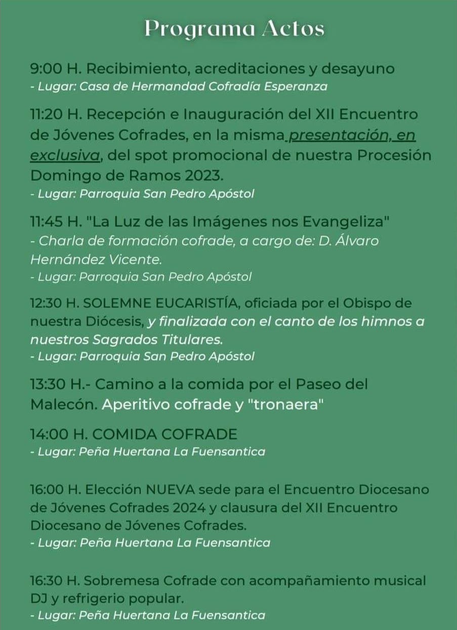 Cartagena participará en el encuentro diocesanos de la juventud cofrade