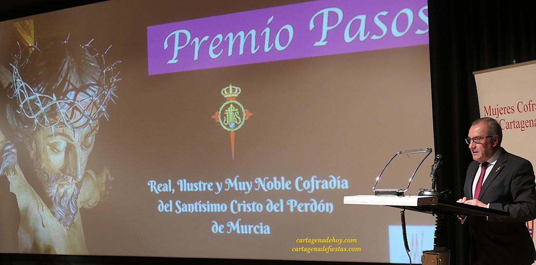 “La palabra o término cofrade no tiene género”, expuso la presidenta de la Junta de Cofradías de Cartagena durante la gala del XVIII Premio Pasos a la hermandad de la ciudad de Murcia por parte de la Asociación de Mujeres Cofrades, que se abrió con unas significativas frases del pregón de la Semana Santa de Málaga: "No es cuestión de pechos y de derechos, sólo de Cristo y de su madre, que a todos nos ve iguales".