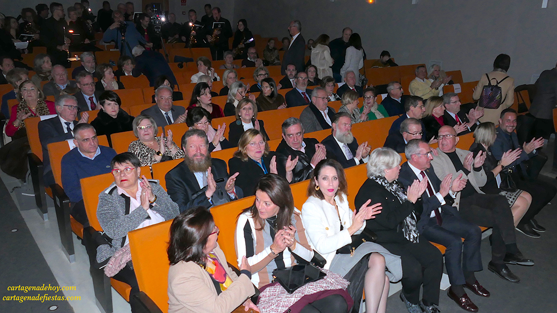 Después, el foco se dirigió hacia el salón de actos ‘Antonio Ramos Carratalá’ de la Fundación CAM en la calle Mayor de la ciudad, donde se celebró una gala que contó con la asistencias del teniente de alcalde, Manuel Padín; de los concejales Esperanza Nieto y David Martínez; y de los cuatro hermanos mayores de las principales cofradías pasionarias de la ciudad, entre otros asistentes.