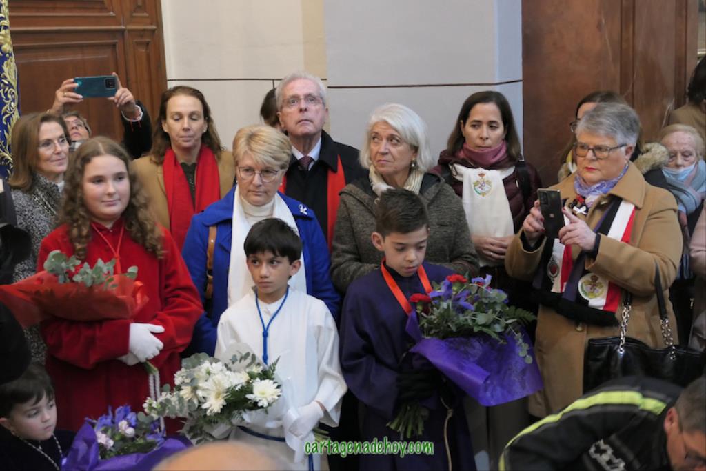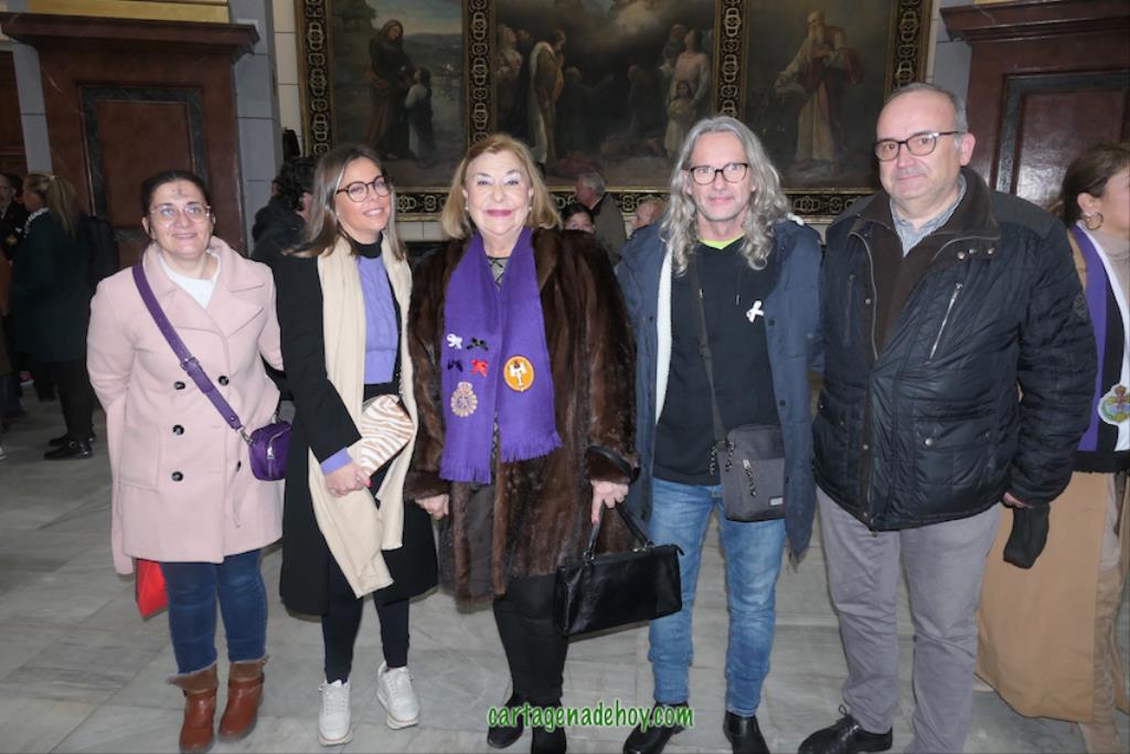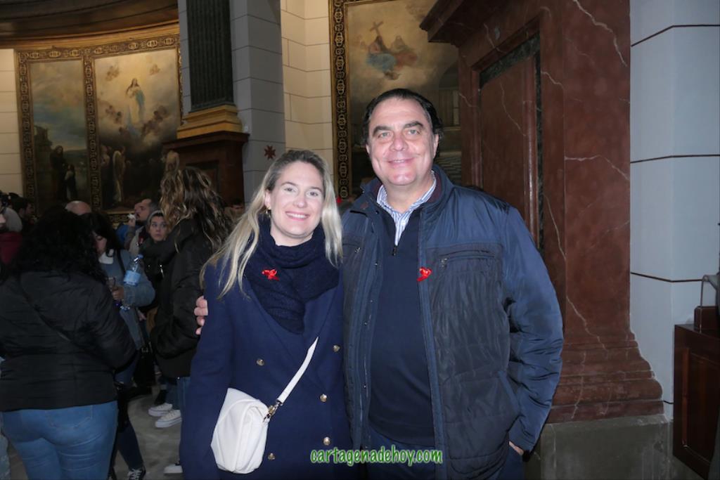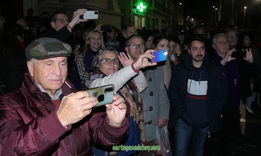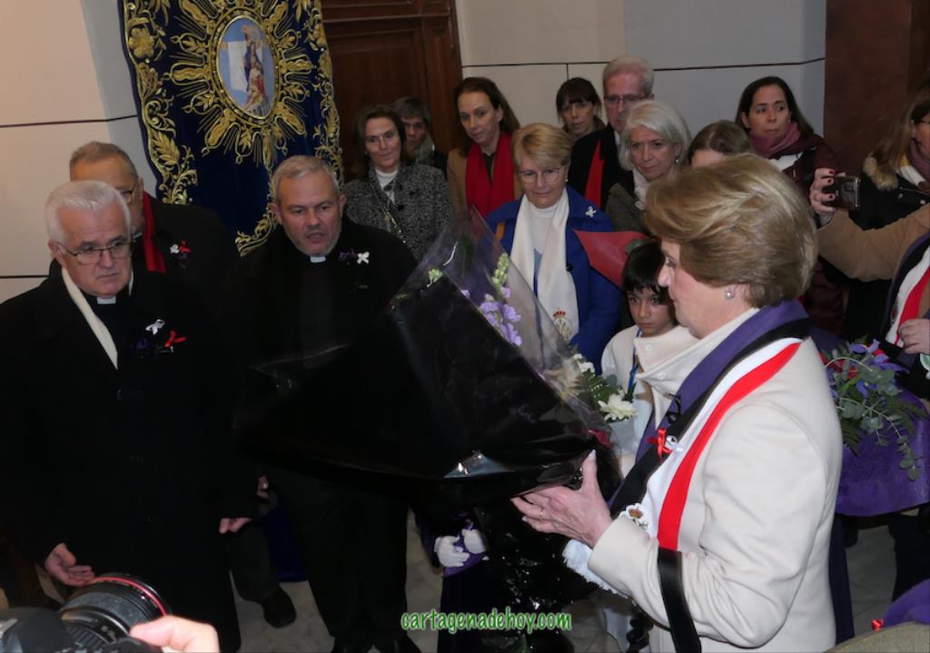 Después de unas palabras de Miguel Solana, en representación de los capellanes de las cuatro cofradías, ante la Virgen de la Caridad, que continúa en una capilla lateral de la basílica debido a las obras (avanzadas pero aún sin terminar), hubo una oración y ofrenda floral, culminando con el canto de la salve popular. Después, como ya es tradición también, numerosas fotos con el fondo de la patrona en una noche de felicidad procesionista, pues "Cartagena ya es Semana Santa", como proclamaban varios.