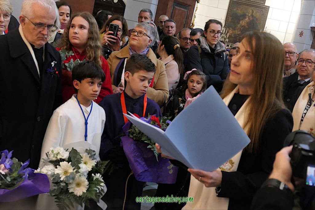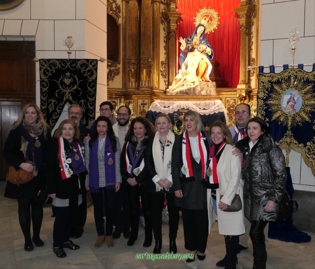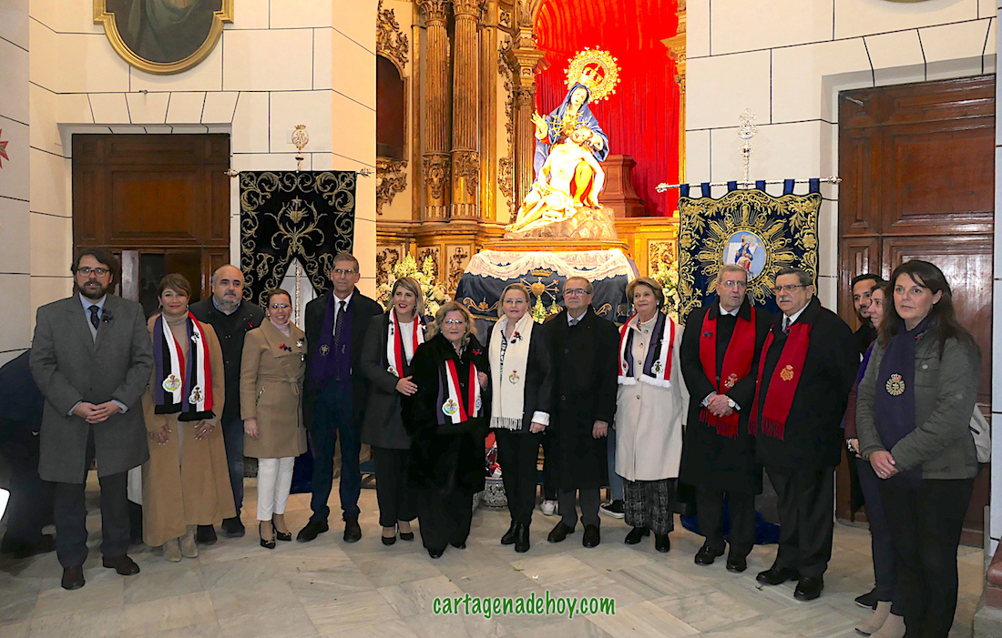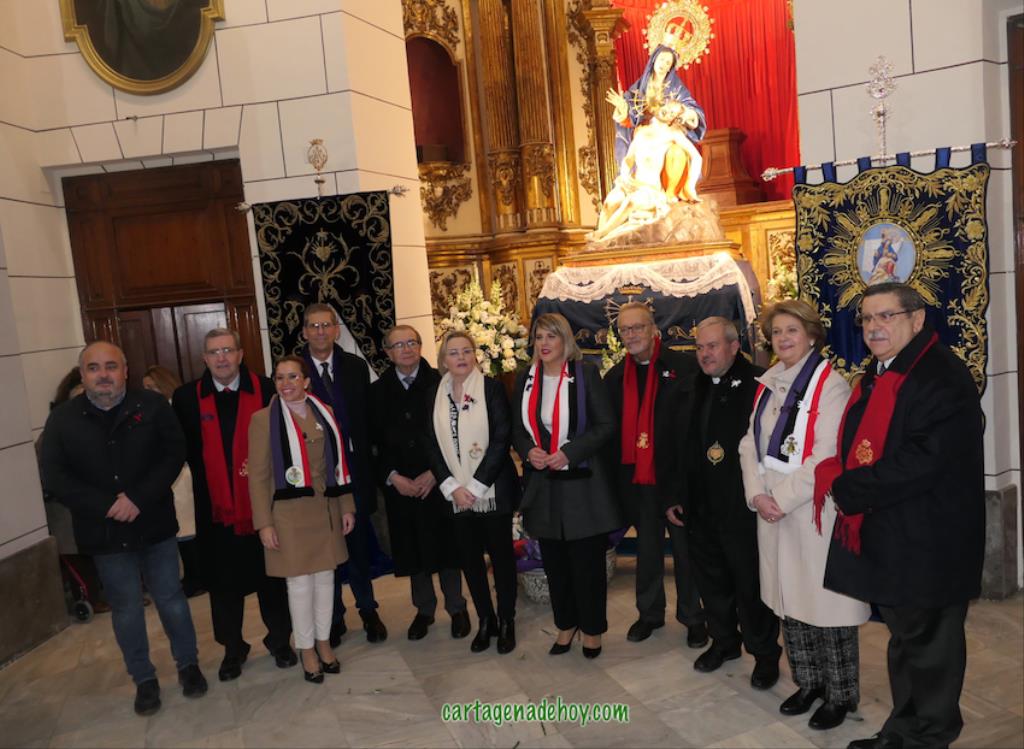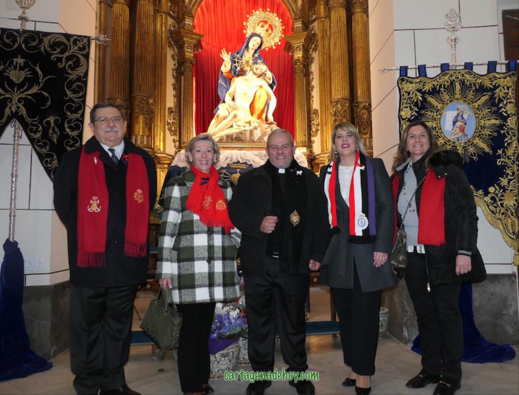 Después de unas palabras de Miguel Solana, en representación de los capellanes de las cuatro cofradías, ante la Virgen de la Caridad, que continúa en una capilla lateral de la basílica debido a las obras (avanzadas pero aún sin terminar), hubo una oración y ofrenda floral, culminando con el canto de la salve popular. Después, como ya es tradición también, numerosas fotos con el fondo de la patrona en una noche de felicidad procesionista, pues "Cartagena ya es Semana Santa", como proclamaban varios.