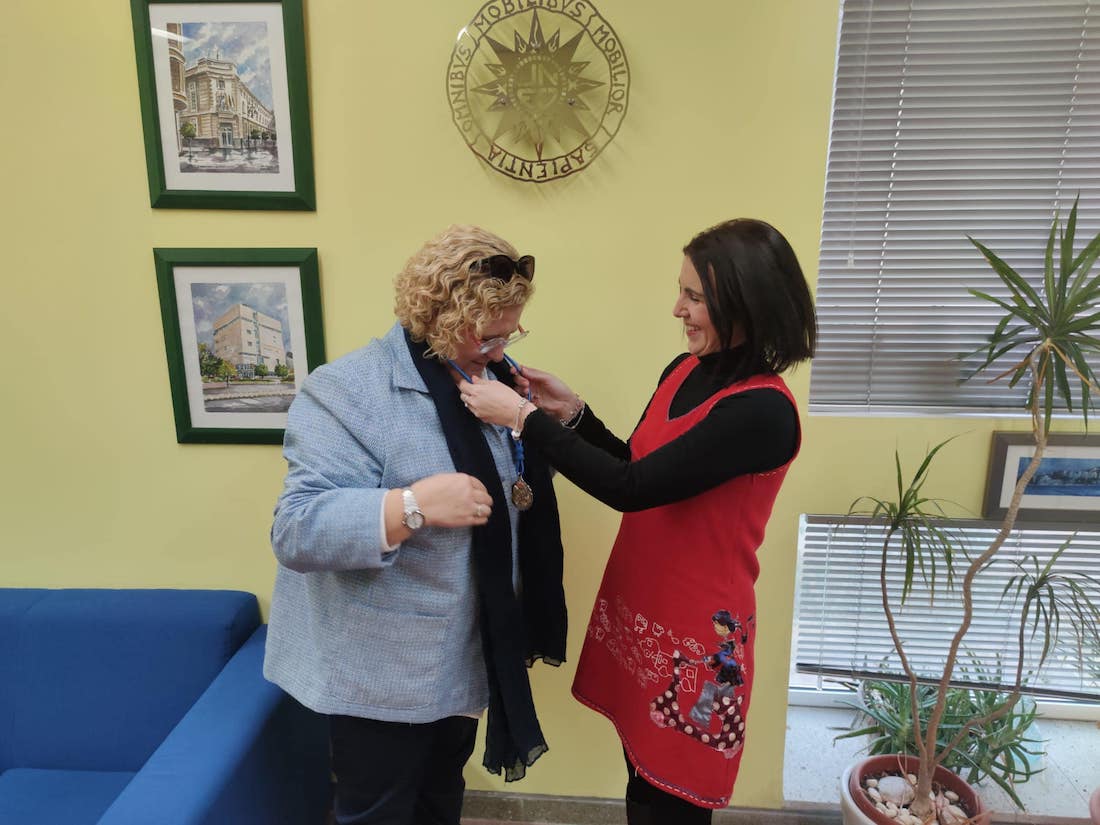 La Agrupación Aparición de Jesús a los Apóstoles en el Lago Tiberiades ha nombrado a la directora de la UNED (Universidad Nacional de Educación a Distancia) de Cartagena como madrina. Por este motivo la presidenta del colectivo procesionista, María José Conesa Cegarra, le hizo entrega de la medalla de la cofradía, con la cual desfilará el próximo Domingo de Resurrección delante del trono de dicha agrupación.
