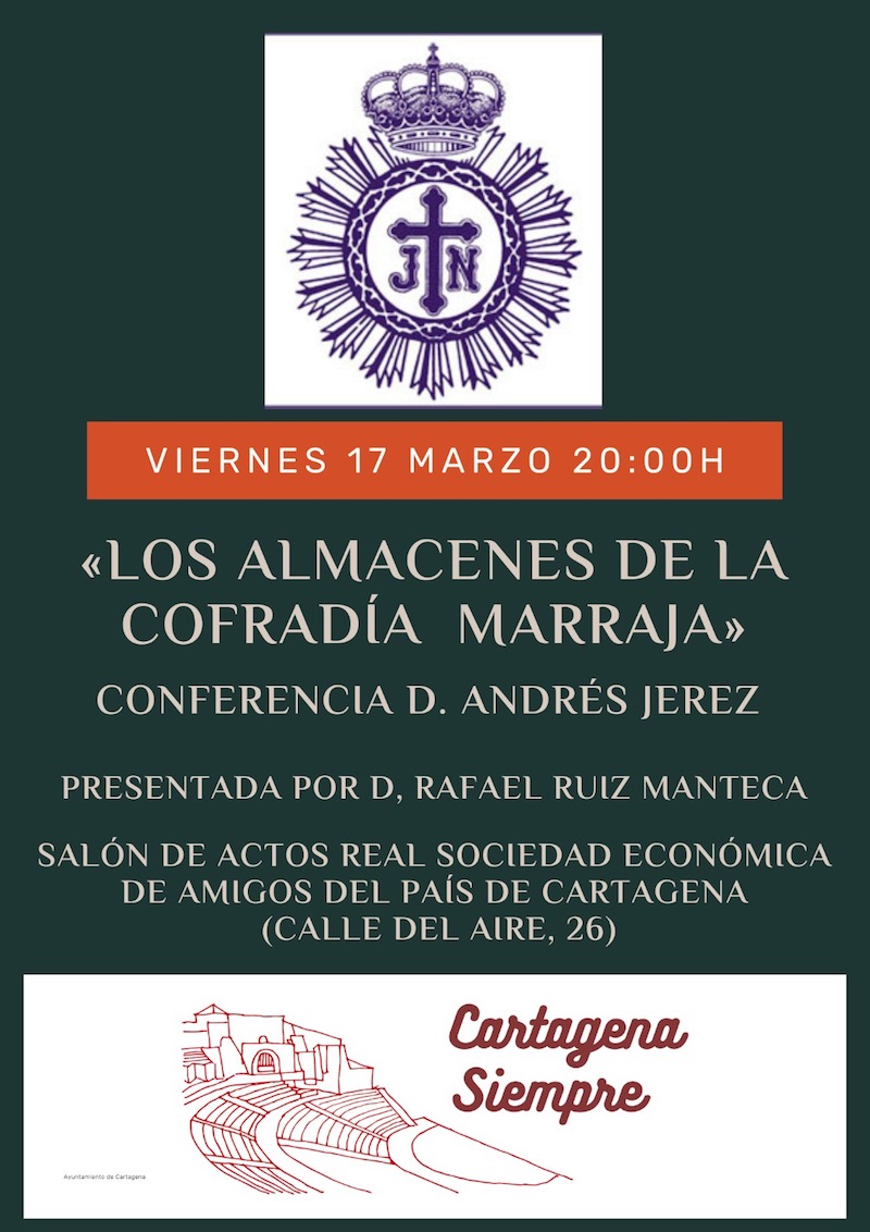 Es el título de la conferencia que ofrecerá Andrés Jerez (mayordomo de almacén de la hermandad del Nazareno) esta noche (20 horas) en el salón de actos de la Real Sociedad Económica Amigos del País en el inicio de la segunda edición de conferencias sobre Semana Santa organizadas por la asociación cultural 'Cartagena Siempre'.
