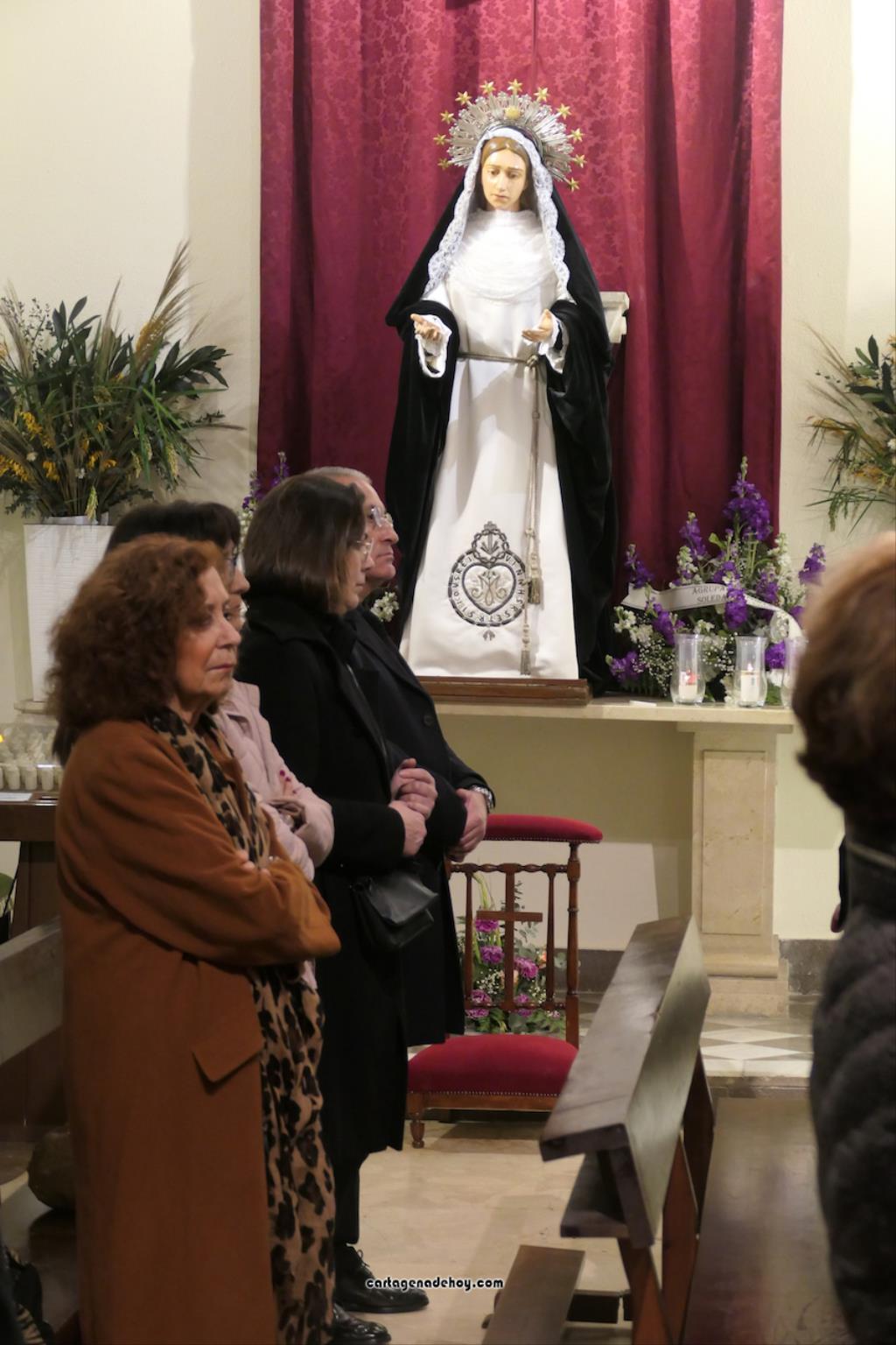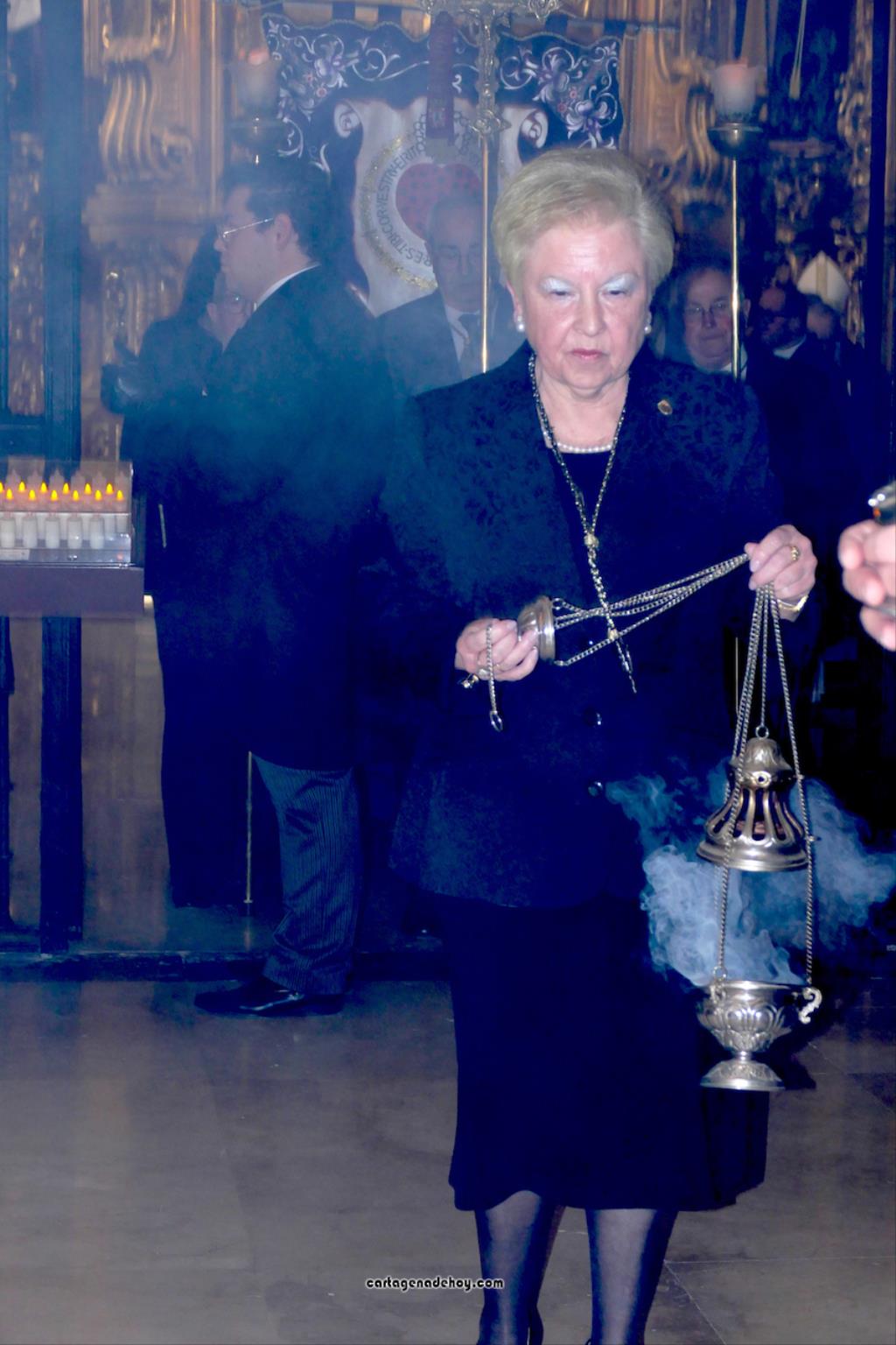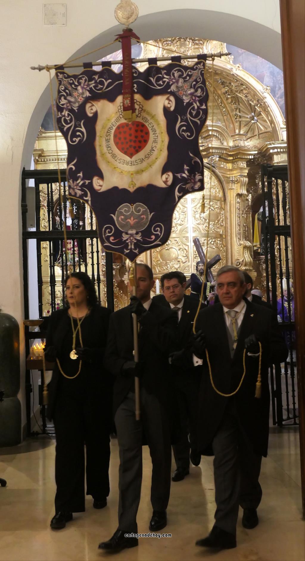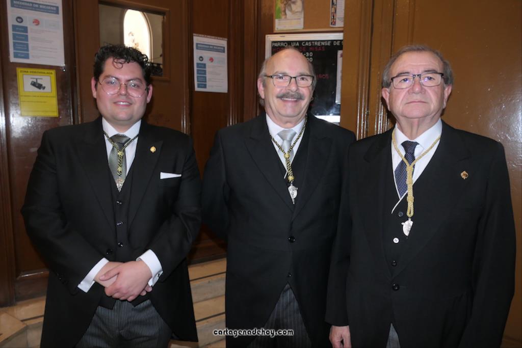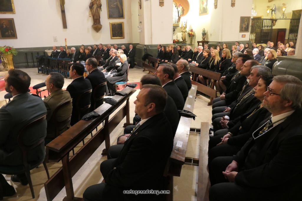 La tercera gran cita eucarística de cuaresma de las hermandades pasionarias de Cartagena ha tenido como protagonista a la Real e Ilustre Cofradía del Cristo del Socorro en la iglesia de Santo Domingo, donde el crucificado ha estado situado delante del nuevo retablo sobre una base de flores rojas, en un bonito adorno creado por José Manuel López Vilar, actual vicesecretario general y responsable de orneto de la cofradía que crearon 33 caballeros en 1691.
