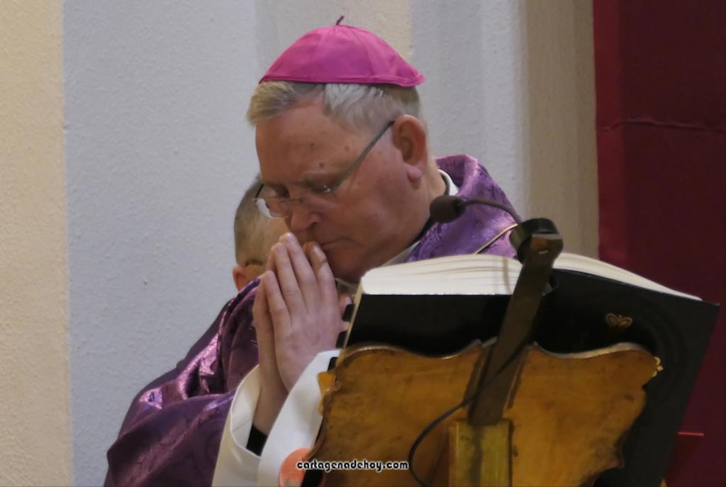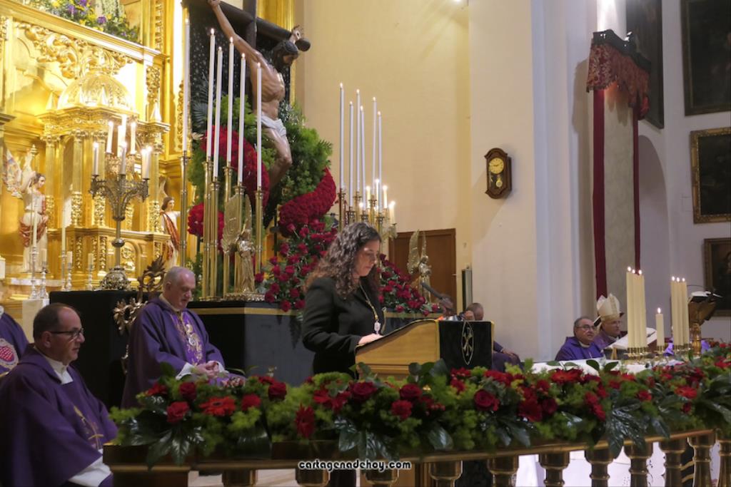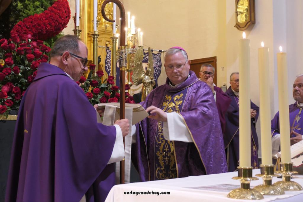 Ha proclamado que el amor de Dios “no tiene fronteras y llega más allá de lo que imaginamos”, ha expresado José Manuel Lorca Planes, mirando a continuación al Cristo del Socorro “que nos muestra lo que vamos a vivir intensamente en unos días, pues Semana Santa es todo el año, pero la vivimos especialmente con la Pasión del Señor”, invitando a los presentes a que, durante “el especialísimo vía crucis” de la madrugada del Viernes de Dolores, se mira a la imagen “reflexionado con nuestras vidas (…) No hay valor más grande que el amor a Dios y debemos imitarlo. Miremos a Cristo”, proponiendo que se le regale “a nuestro Señor la paz del corazón viviendo la caridad que nos recuerda la patrona de Cartagena con su nombre, así debe ser nuestro estilo de vida”. Ha concluido el obispo abogando porque todos “trabajemos por una sociedad limpia y transparente en la que la fraternidad esté con nosotros”.