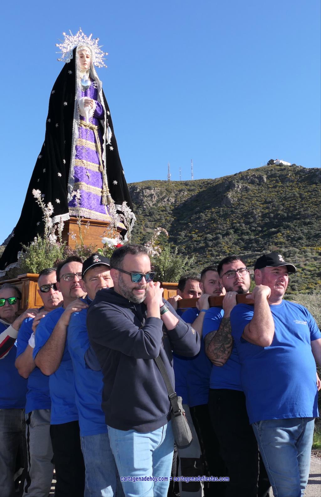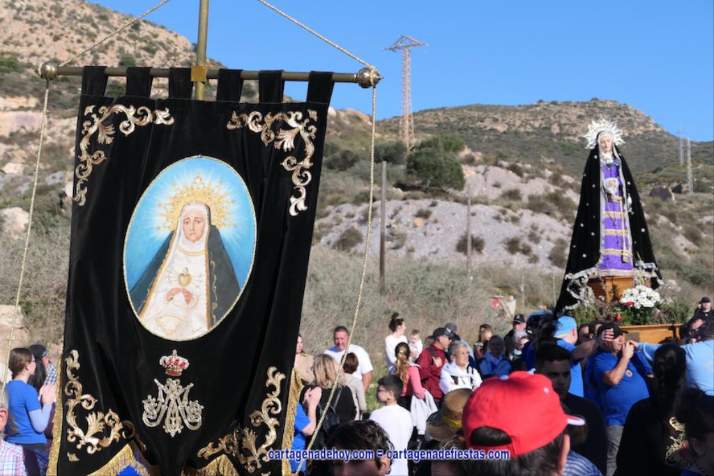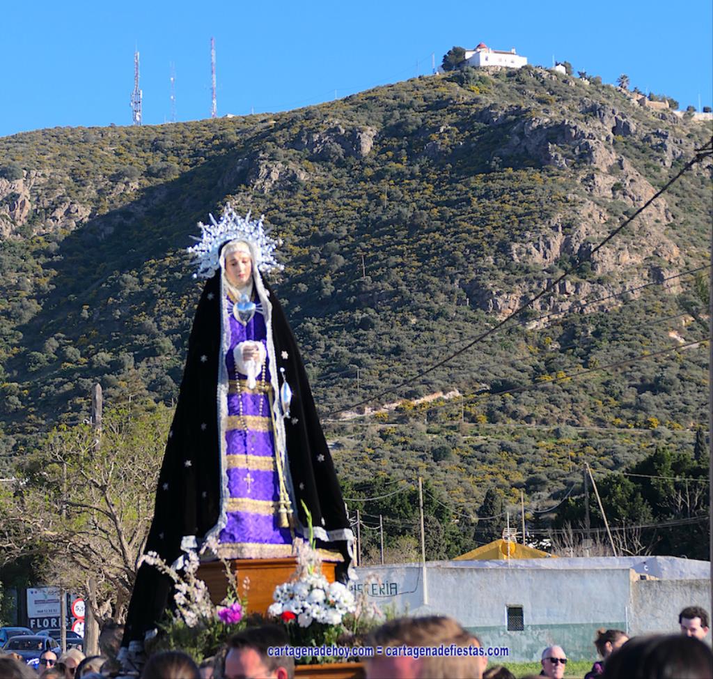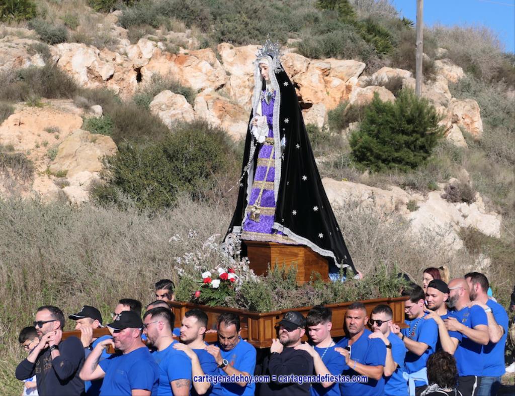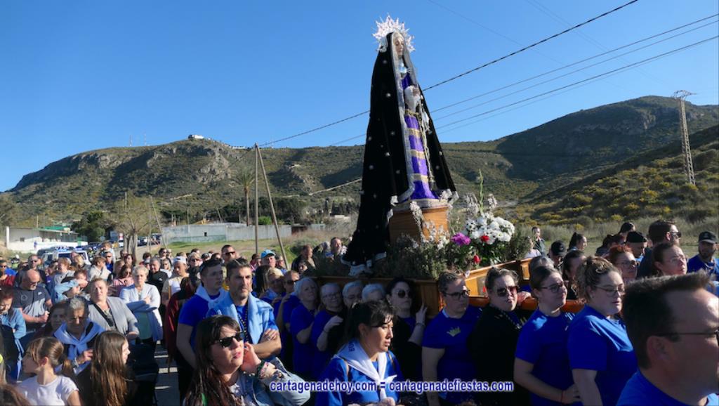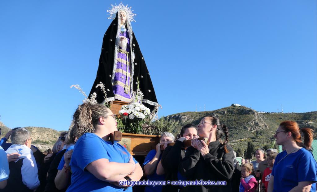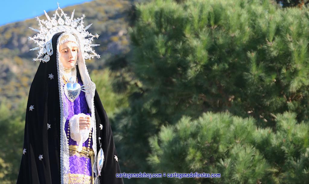 La comitiva, entre cuyos participantes estaba el edil José López, también ha hecho un alto en la iglesia de San Pedro Pescador de Lo Campano, para después reanudar su camino hasta la parroquia de Santa Lucía, donde ha llegado sobre las siete de la tarde, celebrándose una eucaristía y el rezo de los 'Dolores de la Virgen'. Durante las siguientes jornadas del septenario, habrá todas las tardes santo rosario a las 18.30 horas y misa media hora más tarde. El viernes el vía crucis comenzará a las 19 horas, el sábado habrá ofrenda floral a las 12 y el domingo comenzará a las 9 la eucaristía de despedida.