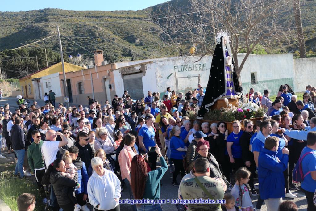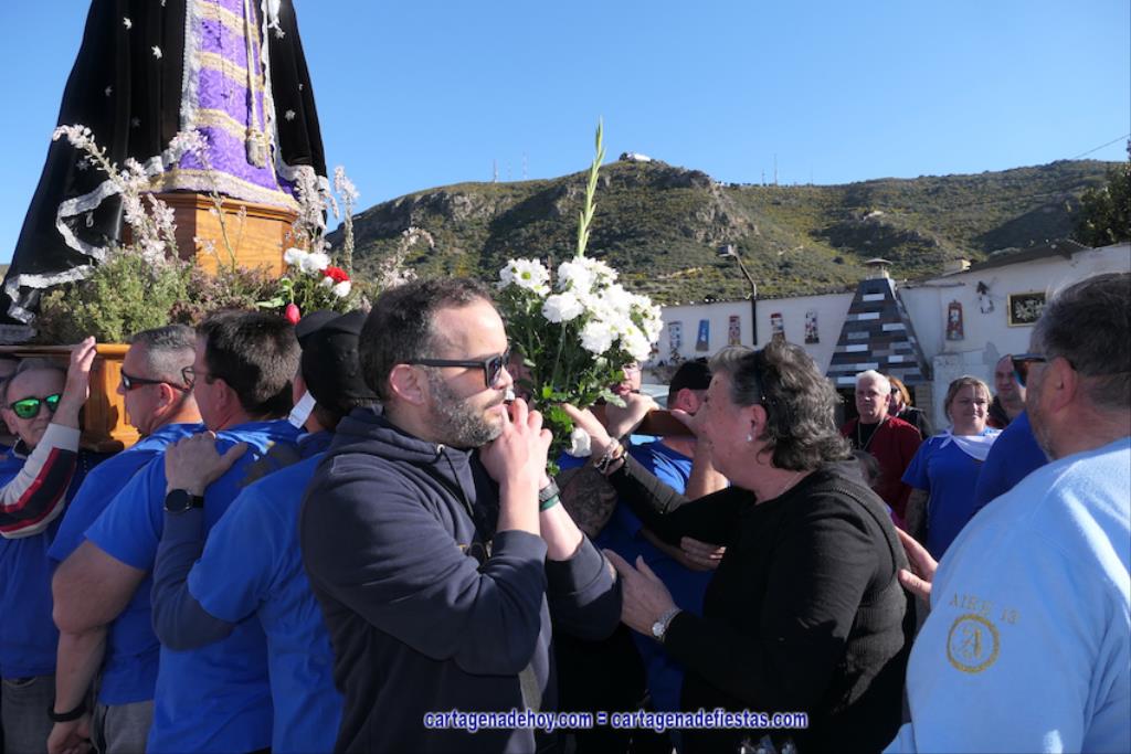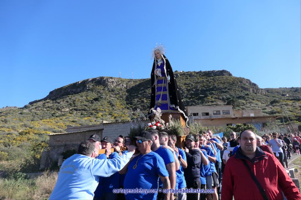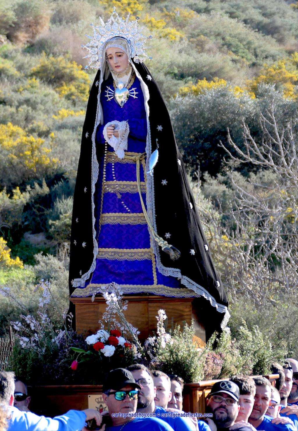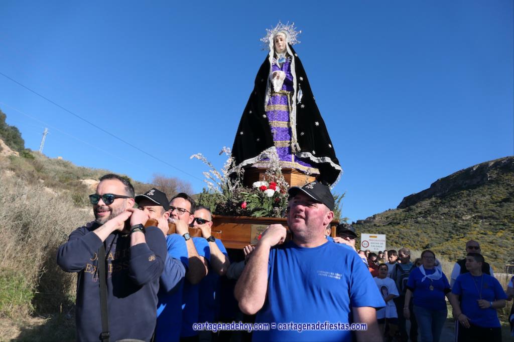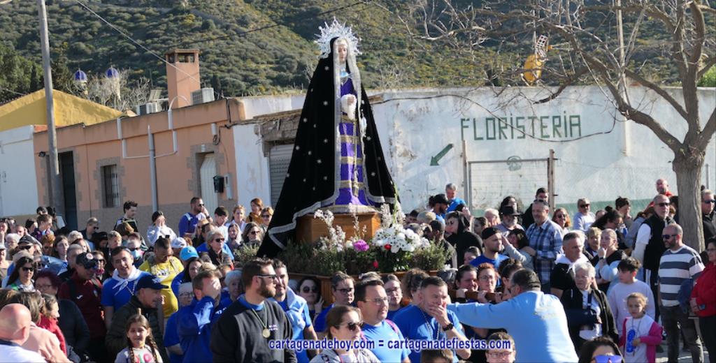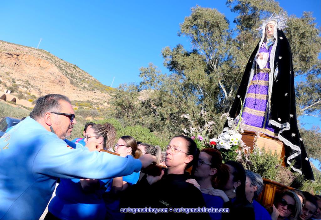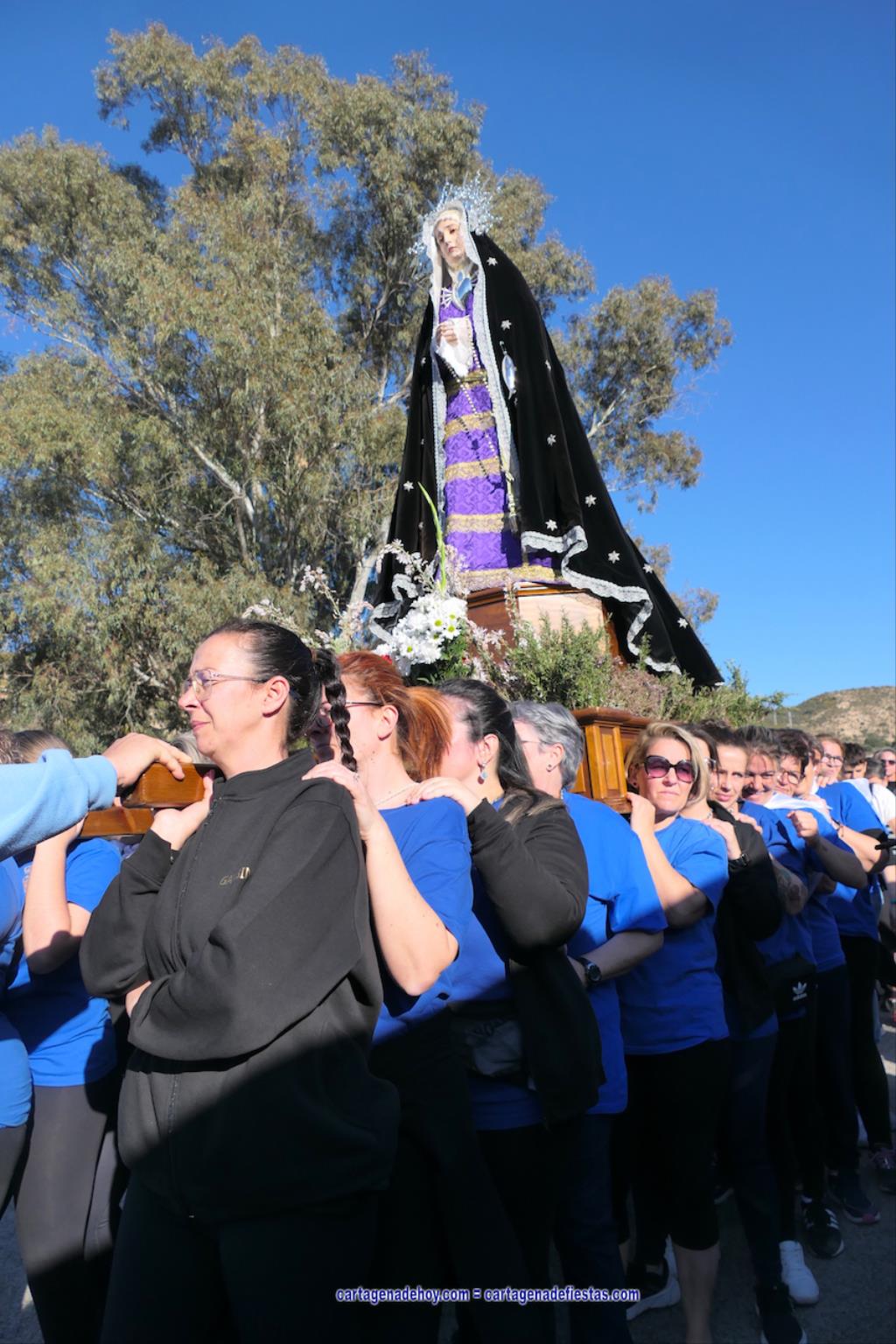 La comitiva, entre cuyos participantes estaba el edil José López, también ha hecho un alto en la iglesia de San Pedro Pescador de Lo Campano, para después reanudar su camino hasta la parroquia de Santa Lucía, donde ha llegado sobre las siete de la tarde, celebrándose una eucaristía y el rezo de los 'Dolores de la Virgen'. Durante las siguientes jornadas del septenario, habrá todas las tardes santo rosario a las 18.30 horas y misa media hora más tarde. El viernes el vía crucis comenzará a las 19 horas, el sábado habrá ofrenda floral a las 12 y el domingo comenzará a las 9 la eucaristía de despedida.