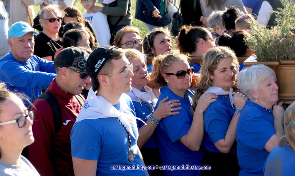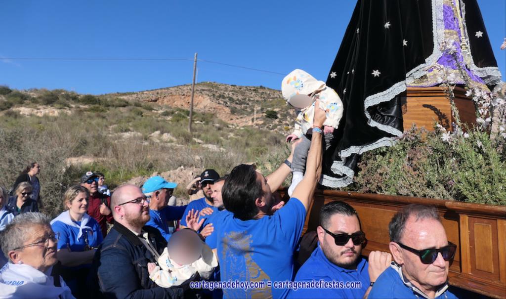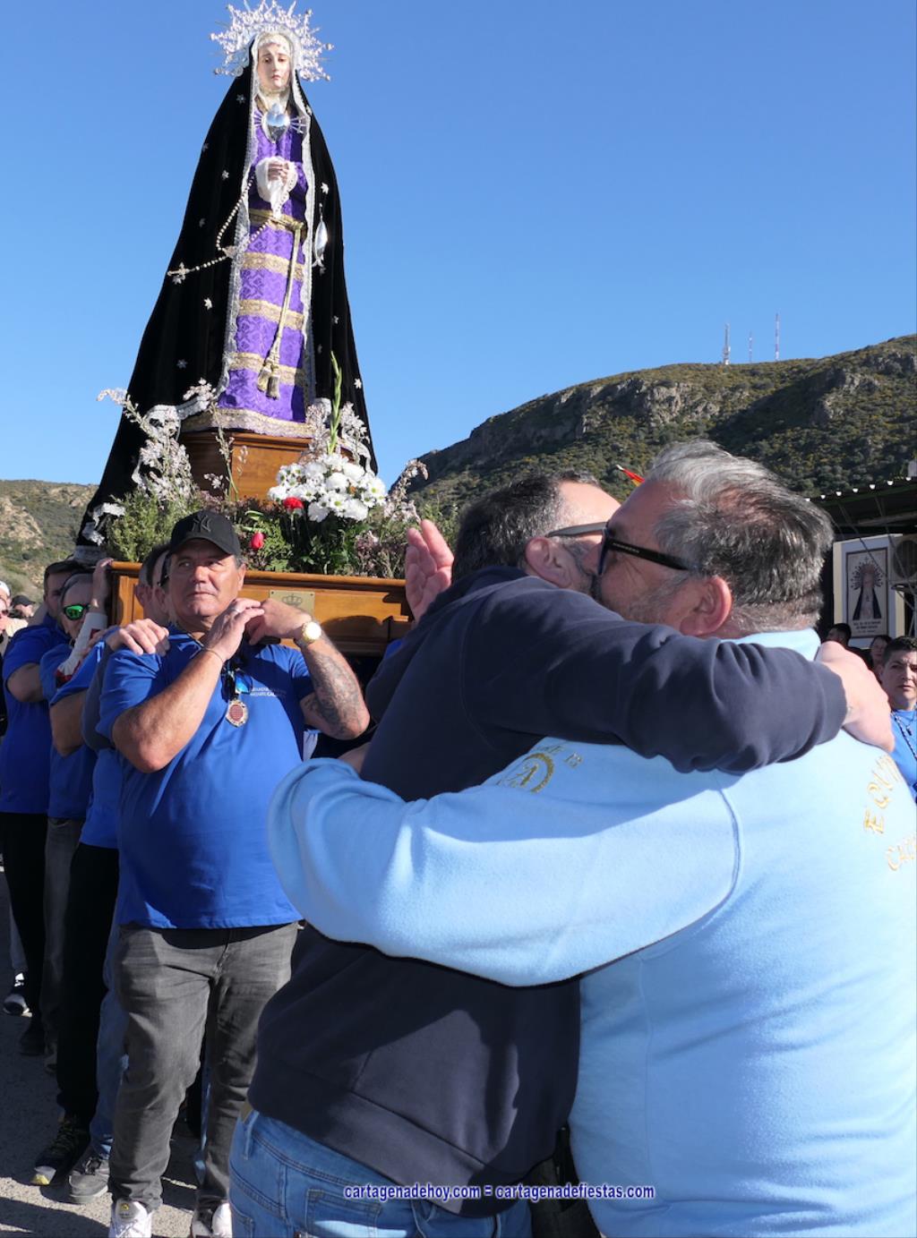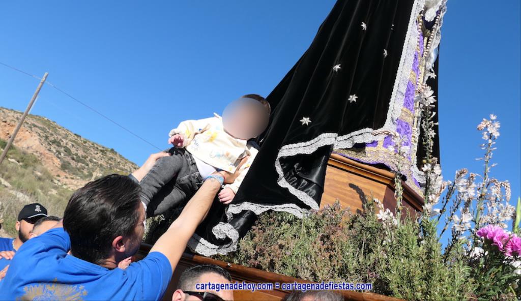 Varios apuntes queremos resaltar en esta crónica. Por un lado, que al frente del cortejo marchaba Ignacio Aparicio Moral, quien lleva unos quince años fiel a la romería. Venía con sus nietos pequeños y ahora uno de ellos, José Miguel, es quien lleva el estandarte. Otro apunte es que han sido varios los niños nacidos en los últimos meses los elevados junto a la talla hasta hacer contacto con el manto, para que esta prenda de la Virgen los proteja en sus vidas. También los ha habido que han ofrecido, por distintos motivos, ramos de flores a la Virgen, los cuales se han colocado a sus pies. Otro detalle son los abrazos entre portapasos cuando se producían los relevos.
