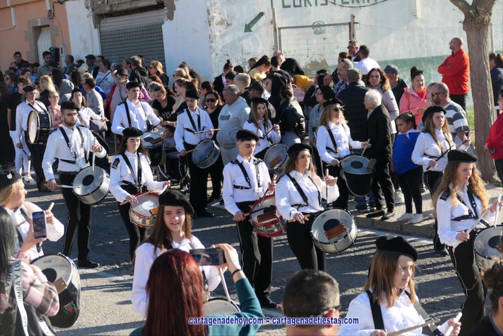 Un grupo de portapasos masculinos han sido los pies de la Virgen en la bajada. Entre ellos iba, en una de las varas traseras, el hermano mayor de la Cofradía de Nuestra Señora de la Soledad del Monte Calvario, José Antonio García Armero, en su primer año en el cargo. Después, han sido damas costaleras las que se han ubicado bajo el trono, para instantes después llegar al cruce donde esperaba la banda de música de 'La buena unión de Los Mateos', pasando el cortejo a tener aroma (y paso) de procesión. Los músicos han recibido a la Virgen con los sones del himno de España, para después dedicarle el popular pasodoble de "¡guapa, guapa y guapa!".