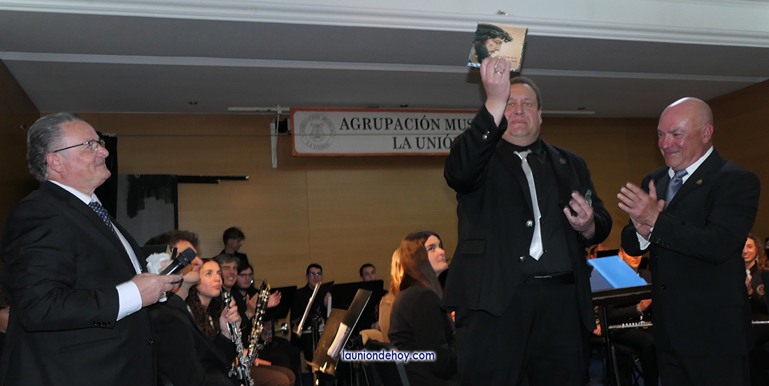 El acto también incluyó entregas, por parte del presidente, Pedro Blaya, de un diploma de la agrupación california a Joaquín Grau y de placas entre el colectivo procesionista y de un azulejo a la banda musical unionense, cuyo director titular es Luis González. El concierto se completó con la interpretación de otras marchas procesionistas.