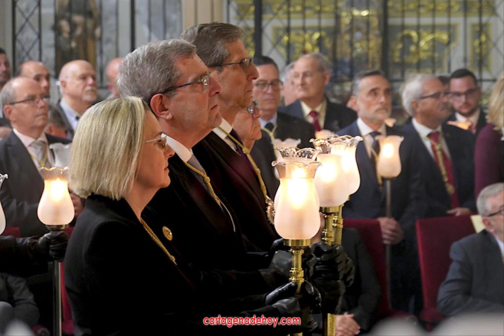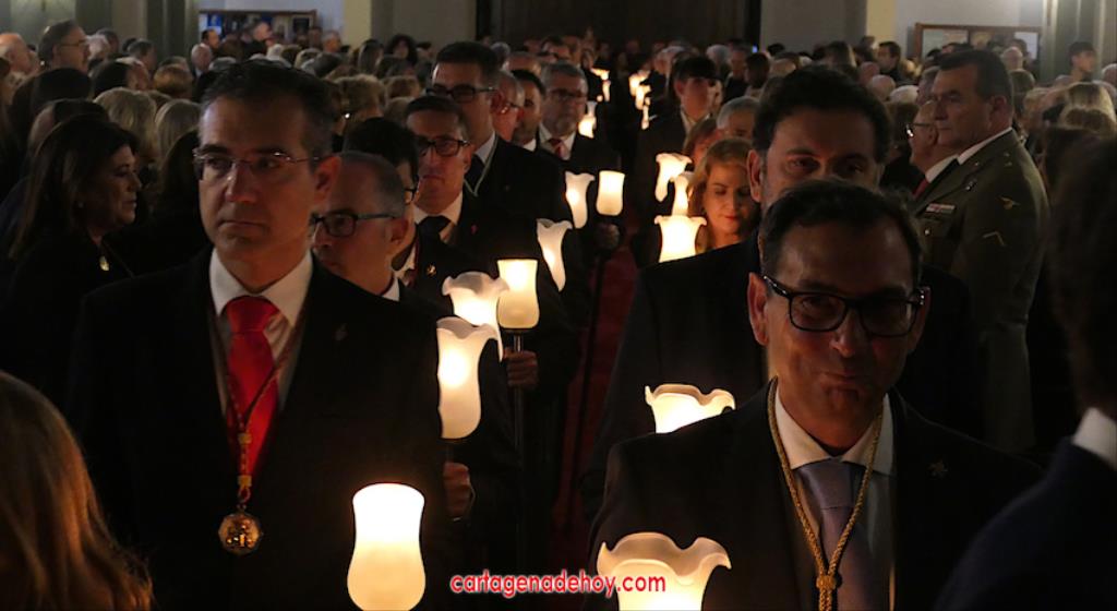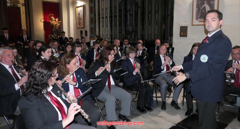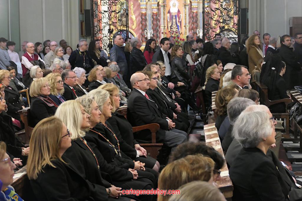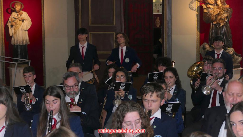 El acto litúrgico ha estado acompañado por la Coral Carthagonova (bajo la dirección de Pedro Andrés García), un tenor y la agrupación musical Sauces (dirigida por Pedro Cánovas), cuyos sonidos han puesto el broche mientras los integrantes de la procesión claustral se recogía, regresando al punto de origen, la capilla california.