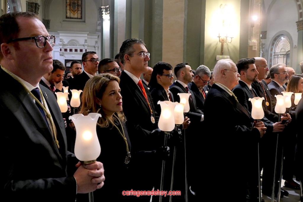 La Cofradía de Cristo del Prendimiento ha culminado los actos litúrgicos principales de la cuaresma cartagenera con la celebración de la Salve Grande, que se ha desarrollado en Santa María con una masiva asistencia de devotos.