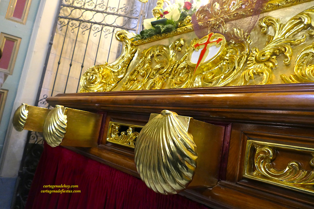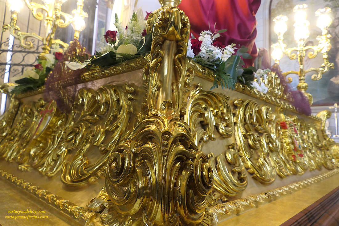 Está realizado en madera de haya de los Balcanes y tallado totalmente en Egipto. Una vez construidas sus piezas, el montaje se ha llevado a cabo en Cartagena. Está realizado sobre una peana de caoba que era la base del trono de Santiago Apóstol de sus salidas de Martes y Miércoles Santo. La nueva peana fue bendecida por el capellán californio, Francisco de Asís Pagán, durante la celebración de la Salve Grande.