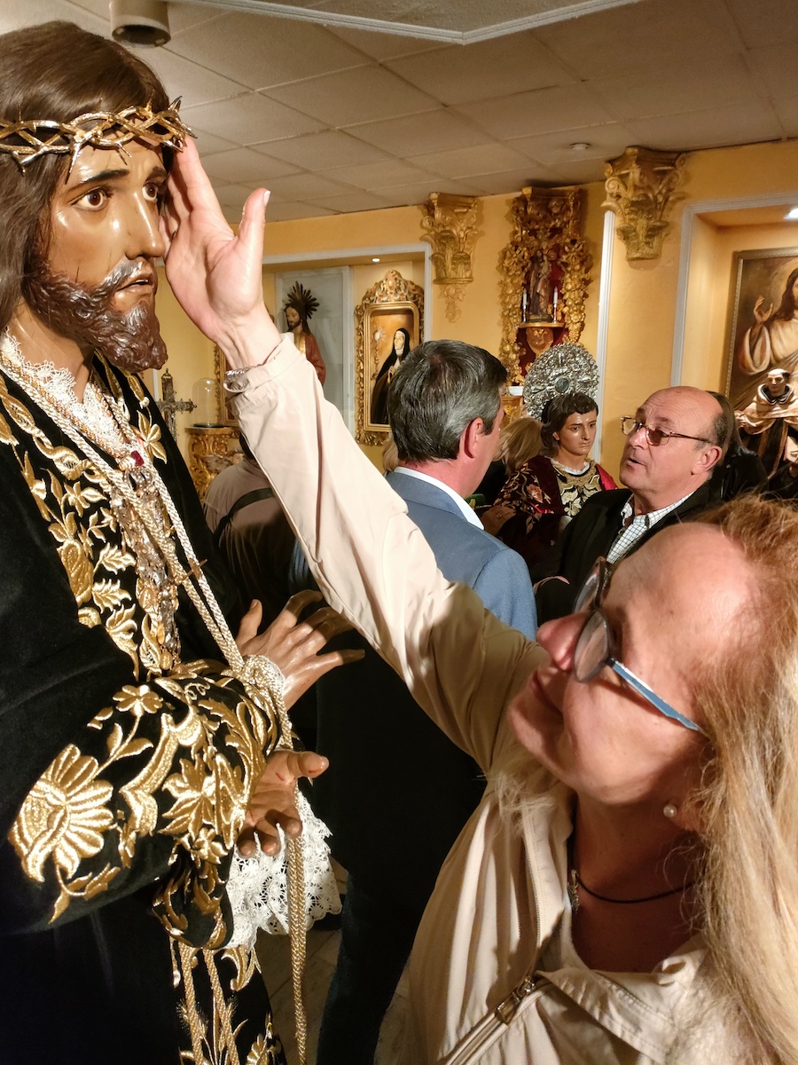 Se ha vivido en esta jornada, un hecho inédito e inesperado, que ha emocionado a todos los fieles presentes, al personarse en la capilla, una señora mayor de nombre Mari Paz García Vega, que se ha desplazado en avión desde Avilés (Asturias), comentando ante los presentes, que el día 28 se desplazo a la ciudad portuaria para agradecer personalmente al Santísimo y Real Cristo de la Divina Misericordia, al que conoció hace diez años, en una visita a la ciudad, el haberla acompañado en los duros trances que pasó al superar dos cánceres y el COVID, habiendo prometido al Cristo venir a Cartagena, para acompañarlo si su salud se lo permitía en el Vía Crucis.