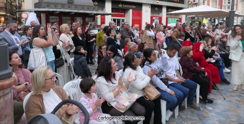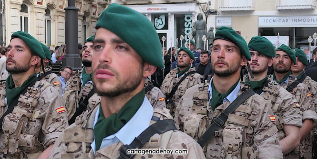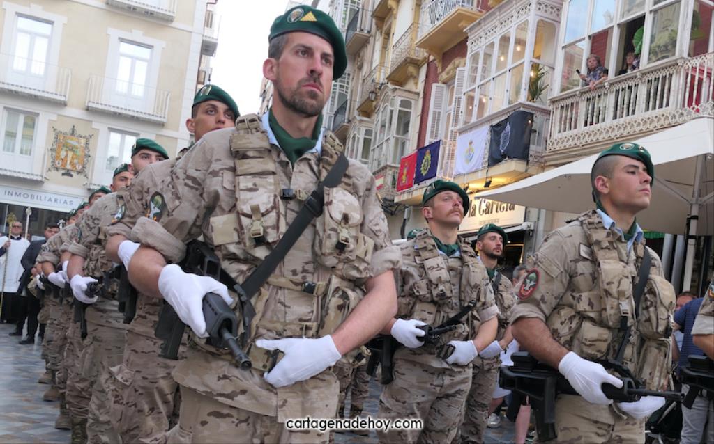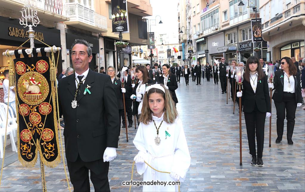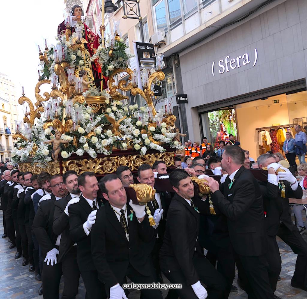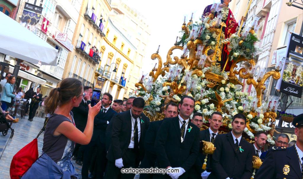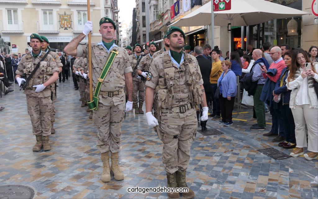 El cortejo, con predominio de trajes en negro sobre fondos blancos y desfilando como se hacía en Cartagena antes de surgir el orden procesionista, ha tenido entre sus momentos estelares el paso por la fachada de la basílica de la Virgen de la Caridad, donde el trono de Cristo ha sido elevado y encarado hacia la patrona, y la recogida final en la plaza de la Merced (‘El Lago’), donde se juntan los tres tronos y se suceden los cantos, la salve, el himno nacional, los vivas, los aplausos y los fuegos de artificio lanzados al cielo, además del acto de los difuntos en el que el escuadro de especialistas de paracaidistas del Ejército del Aire, con sede en Alcantarilla, avanza hacia el Cristo cantando ‘La muerte no es el final’.