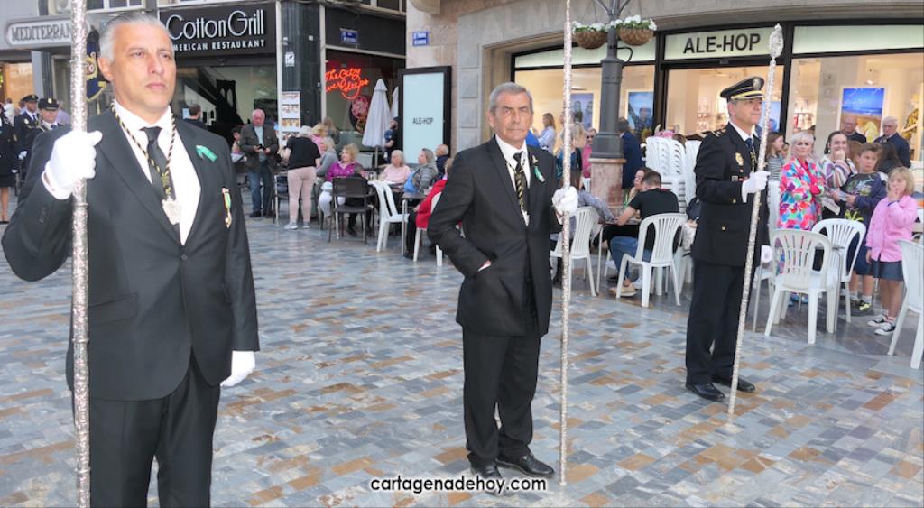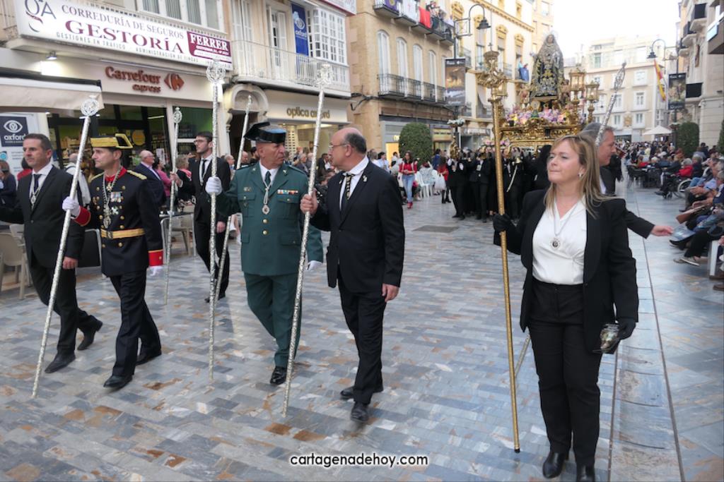 Entre las numerosas personalidades asistentes, destacar, entre otros y como novedades que hayamos detectado este año, a Ignacio del Omo, jefe superior de la Policía Nacional en la Región de Murcia; Tomás Ojaos, nuevo presidente de la Federación de Asociaciones de Vecinos de Cartagena y Comarca; y José Antonio García, quien hace unos meses estrenó el cargo de hermano mayor de la Cofradía de la Virgen del Calvario. Hay que destacar también la presencia de Mari Paz García Vega, que como hemos contado en un artículo anterior, ha venido expresamente desde Asturias para cumplir la promesa que le hizo al Cristo de la Divina Misericordia.