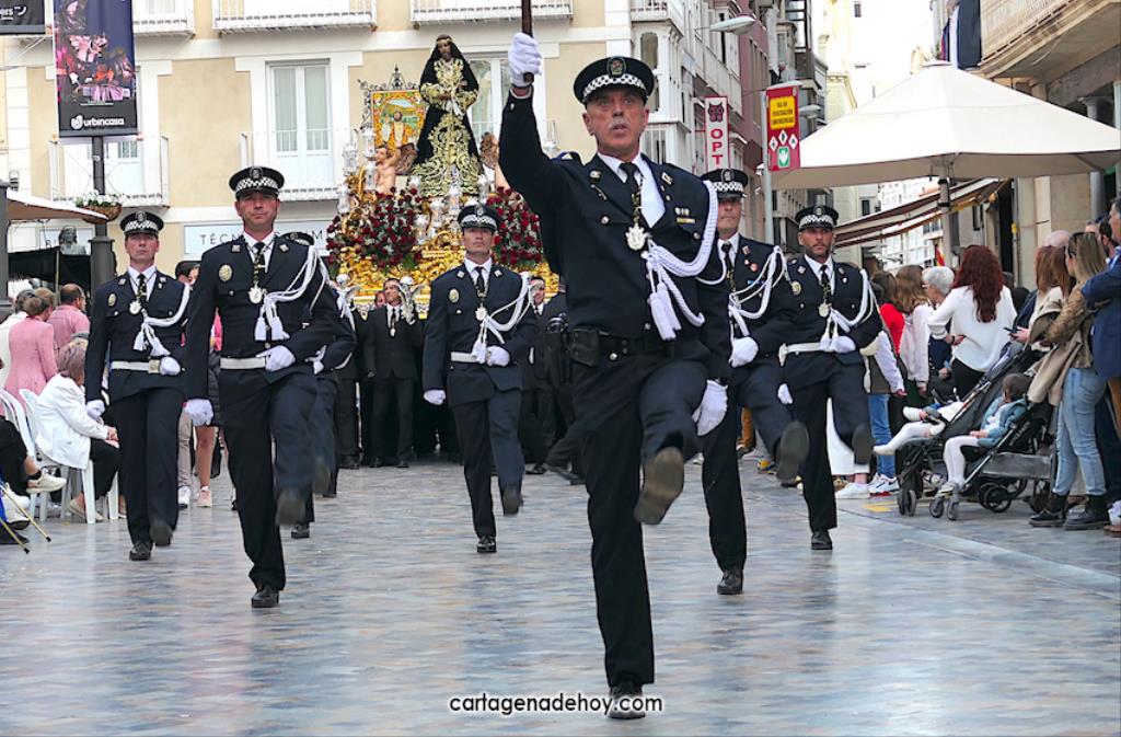 El ‘camino de la cruz’ del Real Cristo de la Misericordia cuenta con la Policía Nacional, Guardia Civil y Policía Local como escoltas de los tres tronos, además del escuadrón de zapadores del Ejército del Aire. GALERÍA DE FOTOS (pinchar aquí)
