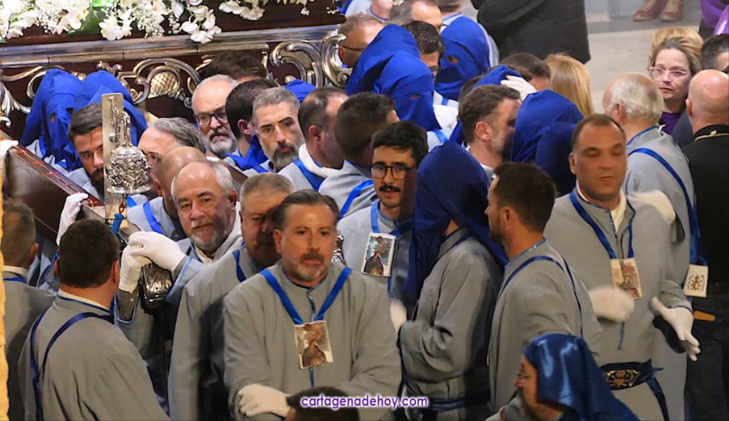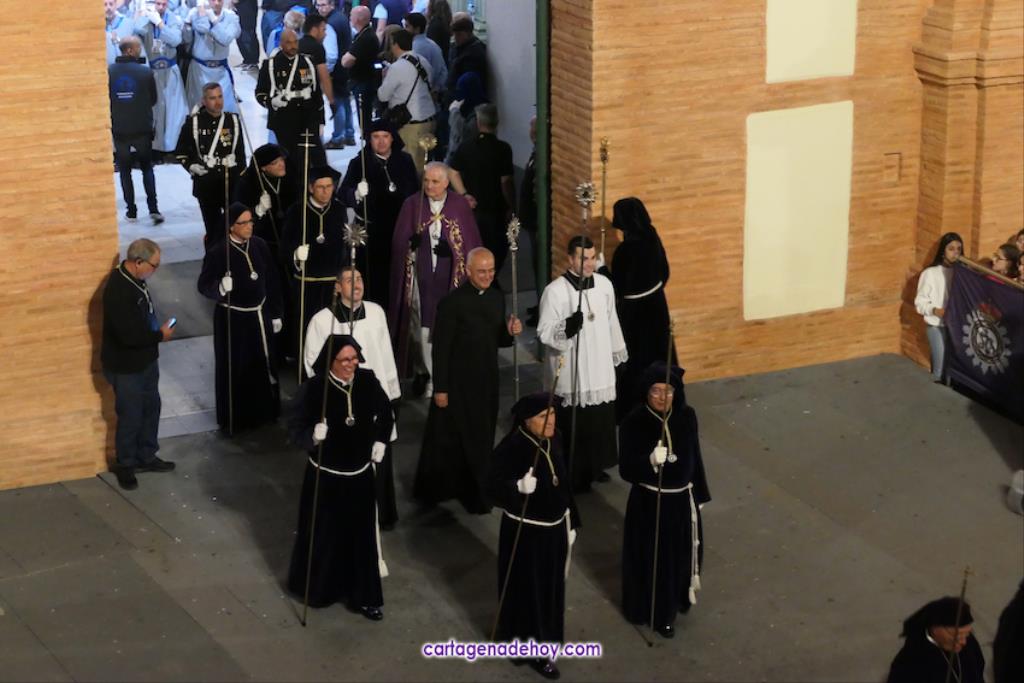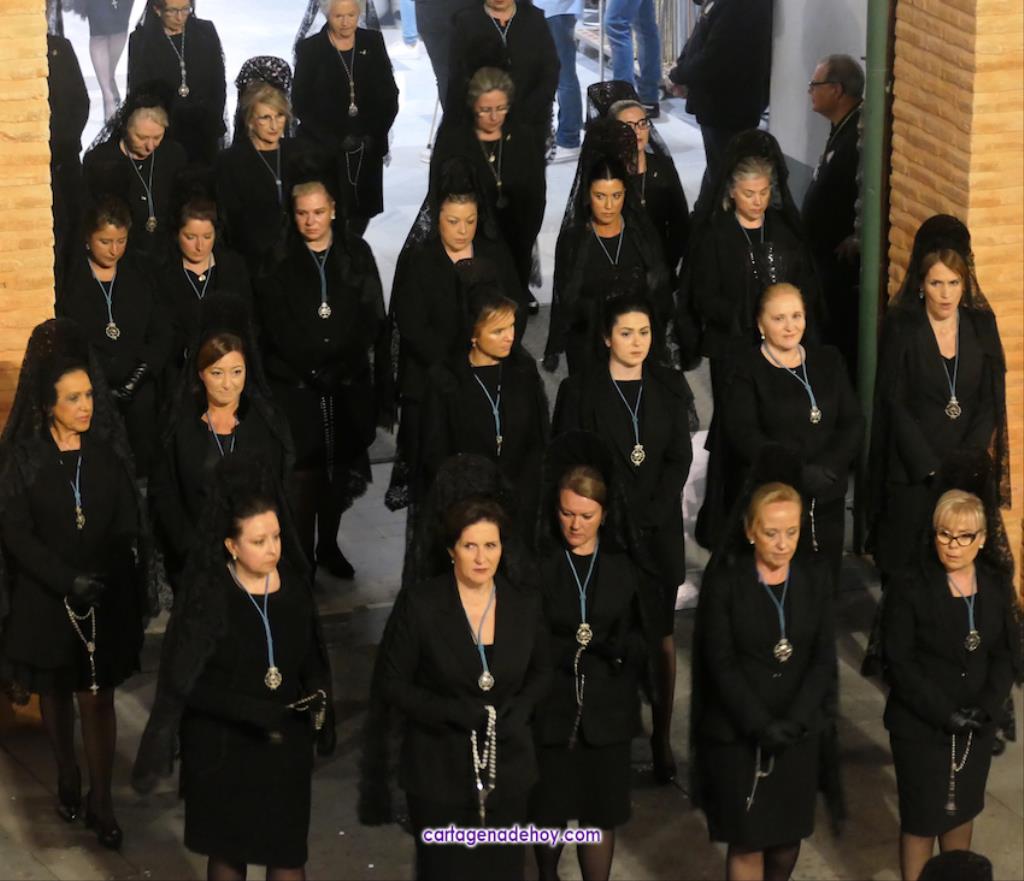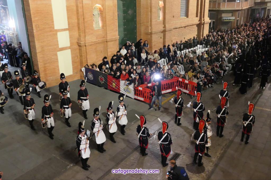 La cifra total bien podría estar próxima a las tres mil promesas, con lo que sería una casi similar a todos los que han formado parte del cortejo marrajo de anoche, de los que unos dos mil son nazarenos. Otros integrantes importantes del cortejo son las bandas de música, todas cartageneras: Nuestra Señora de la Soledad de Molinos Marfagones, Santa Cecilia de Pozo Estrecho y Sauces de la barriada del mismo nombre de la ciudad, que era la que estaba junto al trono de la Virgen y que en su marcha han ido interpretando los temas 'Plegaria', 'Al cielo con ella' y 'Caridad chica'.