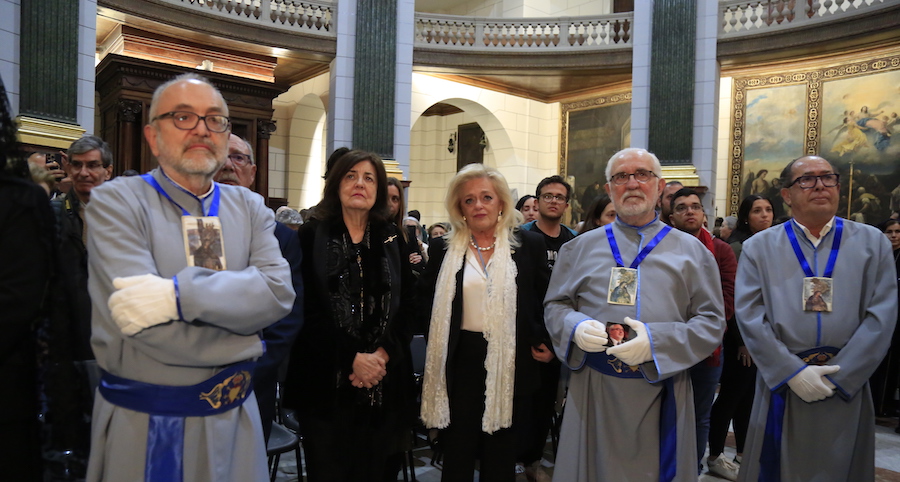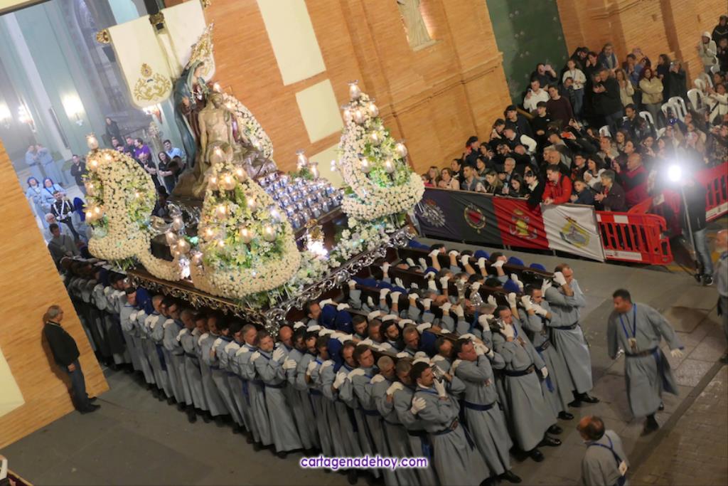 Más apuntes. El trono de La Piedad ha llevado la placa en reconocimiento y recuerdo a la figura de José Luis Mendoza, fundador de la UCAM y devoto de esta Virgen marraja. En la procesión participó su hijo David como portapasos, y su esposa María Dolores García, presidenta de la Universidad Católica de Murcia, y su hermano Vicente, realizaron la ofrenda floral a la Virgen de la Caridad, patrona de Cartagena.