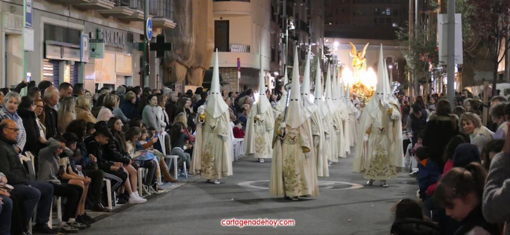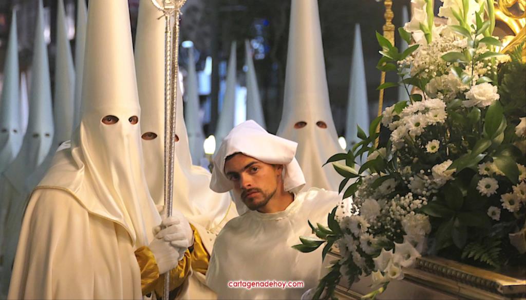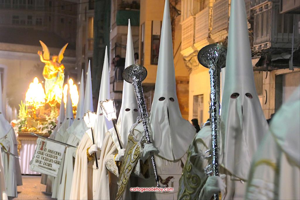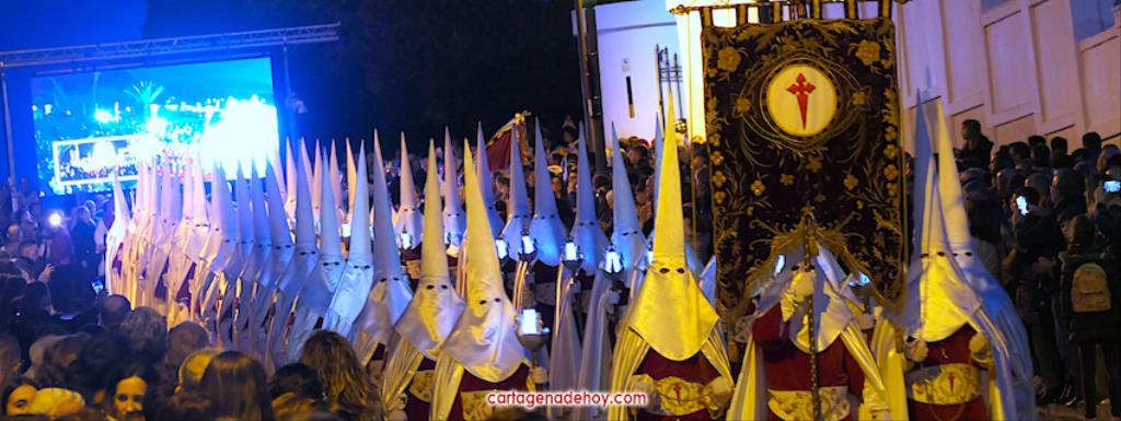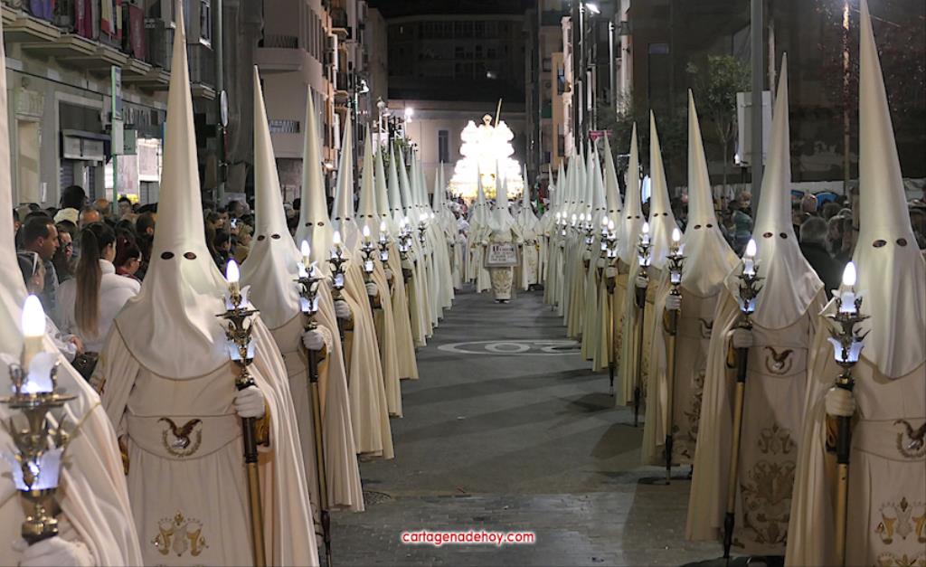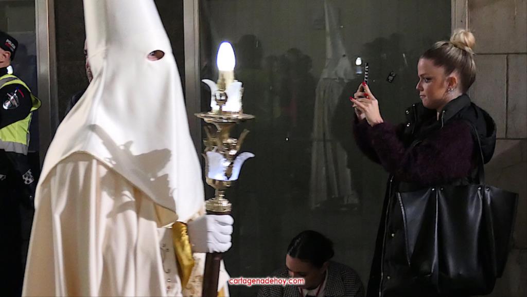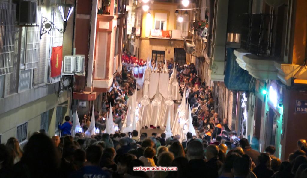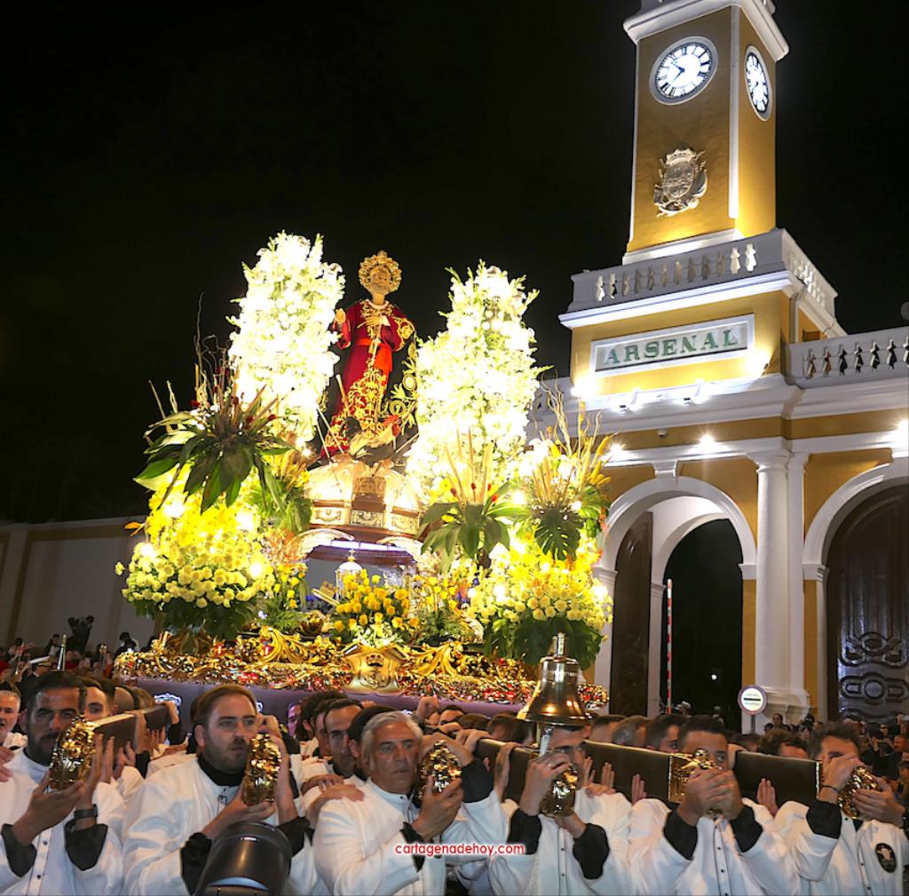 De misión en misión. Unos eligen la salida del San Juan, otros la de Santiago y muchos la de San Pedro, pero también hay quienes intentan estar en todas y los que combinan una salida con otros momentos especiales, como cuando Pedro Marina Cartagena (el nombre del DNI de quien fue el primer Papa) cruza el pórtico del Arsenal, como ver y escuchar a los portapasos santiaguistas cruzar la calle Mayor sin poner el trono en el suelo con su peculiar ‘grito de guerra’ (“¿De quién es la calle Mayor?, ¡Del Santiago!”) o cuando la punta de las varas del trono del Discípulo Amado se meten en la entrada de la Real Basílica Menor de la Virgen de la Caridad. Luego, gran parte coincide en no perderse las recogidas de las tres formaciones en Santa María. Es noche de trasiegos, diferente a las habituales de la Cartagena semanasantera, pero también cargada de emociones y alicientes.