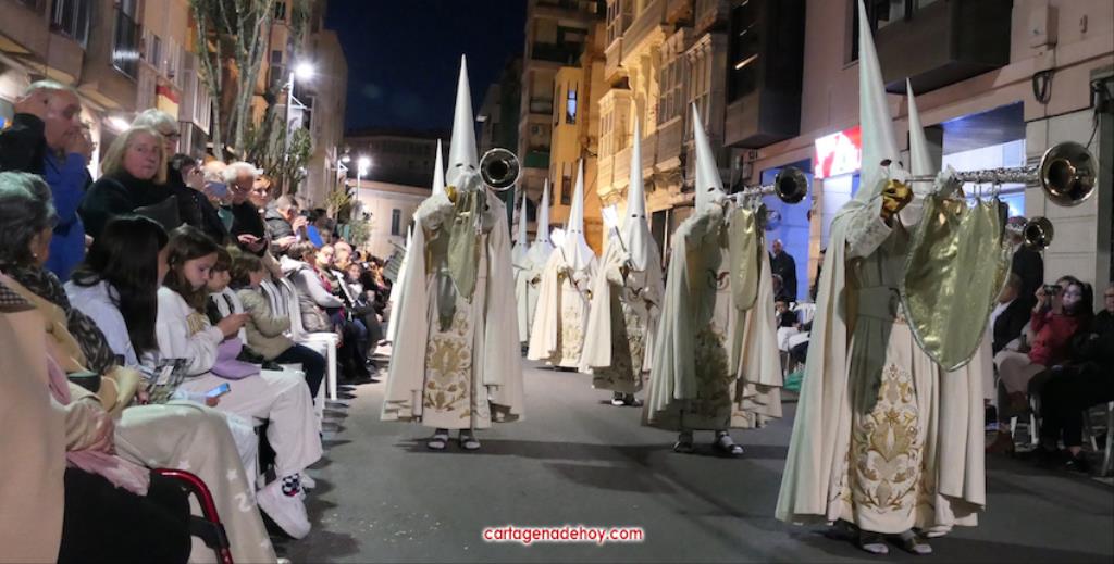 Las imágenes y sus portapasos se han llevado muchos aplausos, pero también el buen orden de los tercios, la marcialidad de los piquetes y escenas más concretas, como cuando cuatro penitentes sanjuanistas hacían sonar su grandes trompetas.