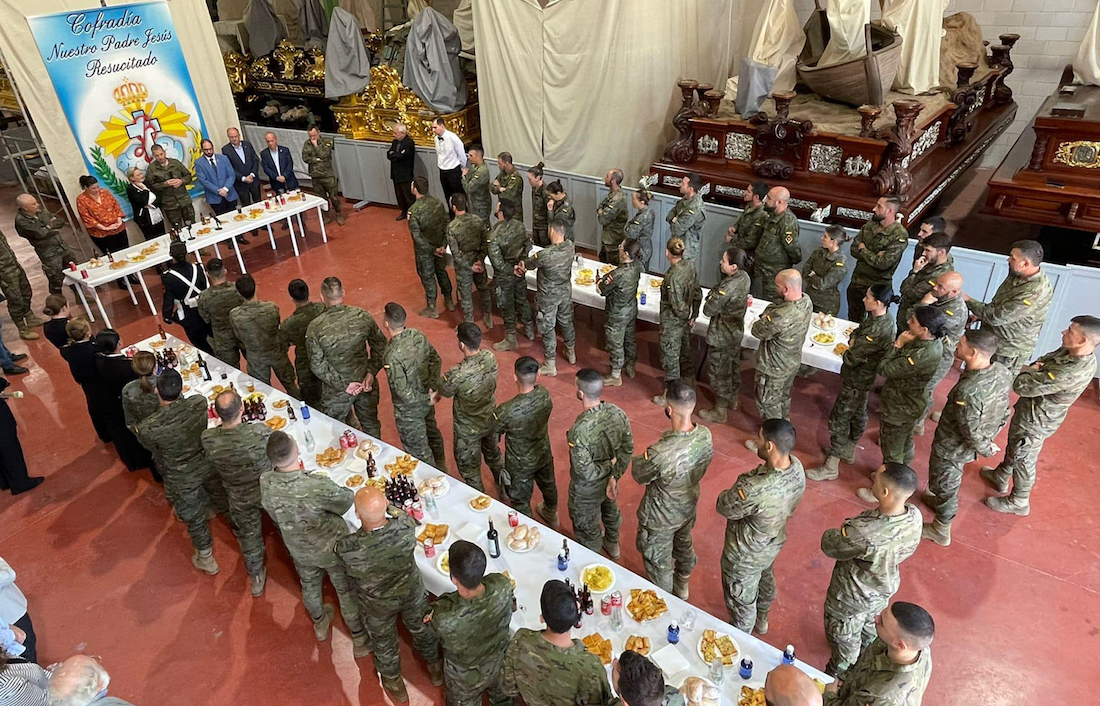 Escena de la tradicional recepción a las escoltas de Artillería y Marina que acompañan a la Virgen del Amor Hermoso