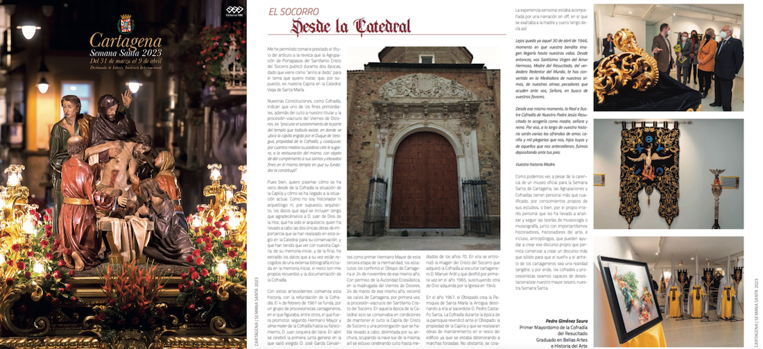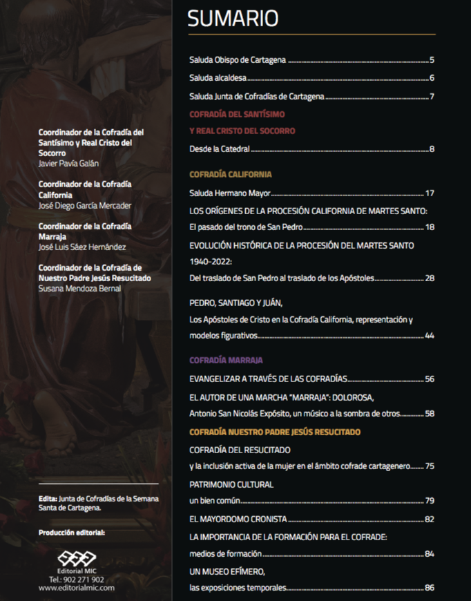 La publicación editada por la junta de cofradías de Cartagena ofrece artículos aportados por las cuatro hermandades pasionarias, siendo la portada la imagen del cartel oficial de 2023.