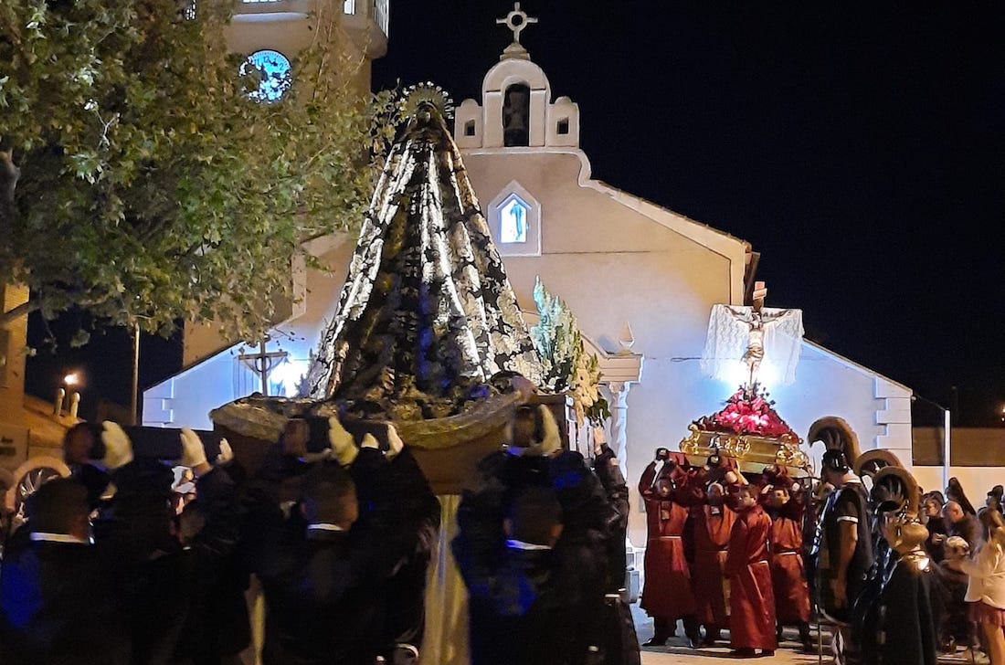 La Cofradía del Cristo de la Agonía cerró sus desfiles pasionarios de este año con la 'Procesión del silencio' que tuvo como protagonistas a las imágenes de la Virgen de la Soledad y a Cristo Crucificado, titular de la hermandad.