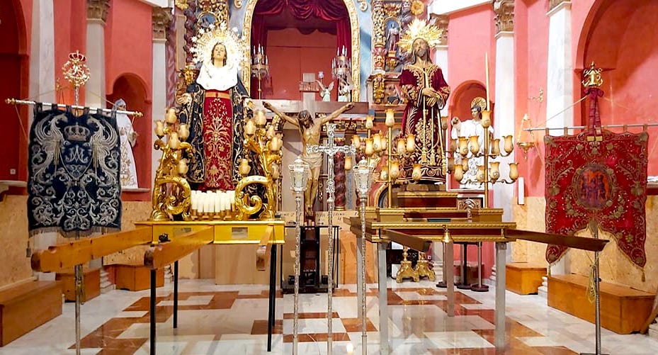La Cofradía California celebrará esta tarde-noche el 275 aniversario de lo que fue su primera procesión con cortejo similar, en el que irán el Cristo del Prendimiento como Ecce Homo y la Virgen del Primer Dolor, que sobre las peanas que se ob servan en la fotografía superior recorrerá la parte más antigua de la ciudad, volviendo a pasar por calles como Cuatro Santos, que hace décadas que dejó de usarse para los desfiles.
