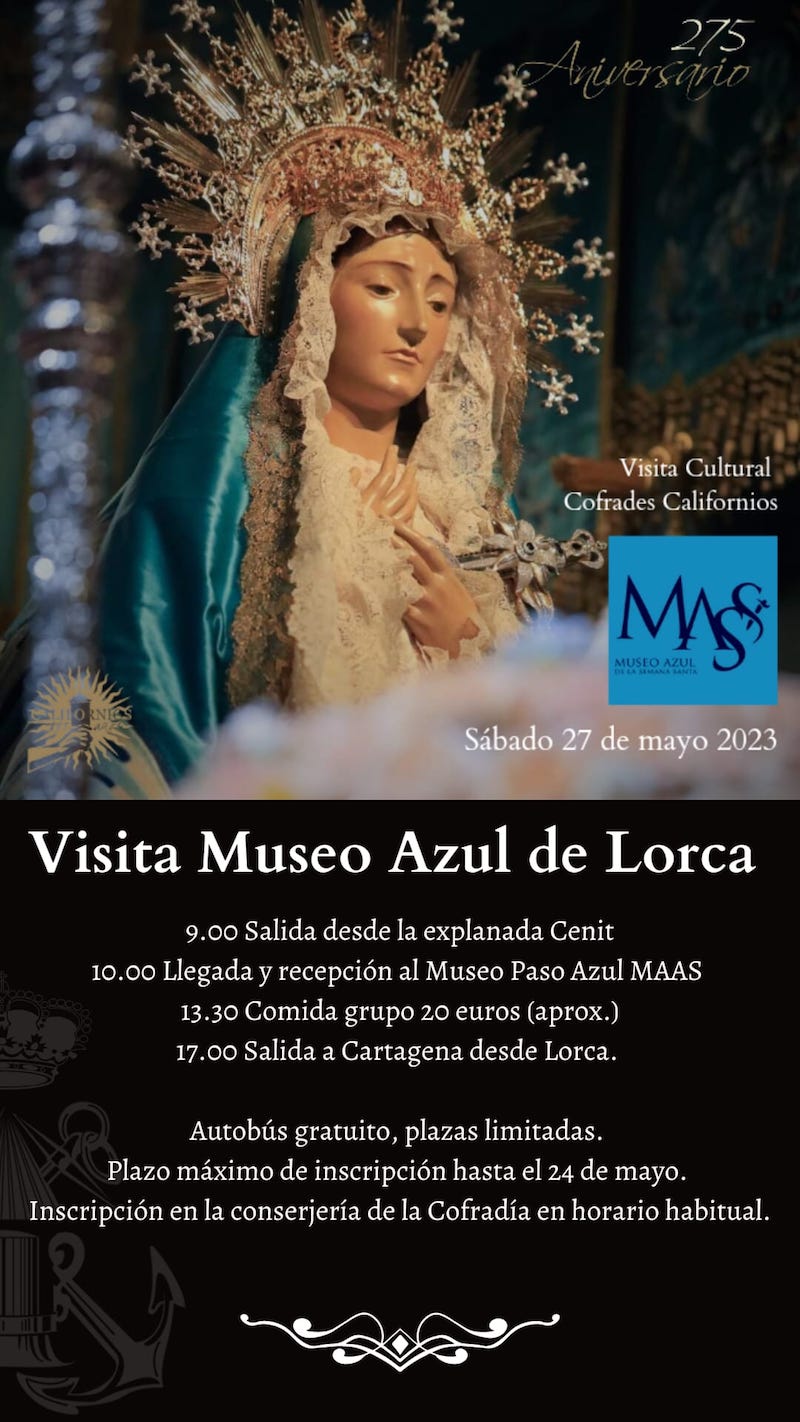 La Cofradía del Cristo del Prendimiento organiza una visita al museo del Paso Azul de la Semana Santa lorquina para el próximo 27 de mayo. El plazo para apuntarse expira el miércoles de la próxima semana. En la imagen se observa una escena de la reciente visita de procesionistas encarnados a la Cofradía del Perdón de Murcia, a cuya finalización, el hermano mayor, Juan Carlos de la Cerra, entregó un detalle del 275 aniversario californio al presidente de la archicofradía, Carlos Valcárcel Siso.