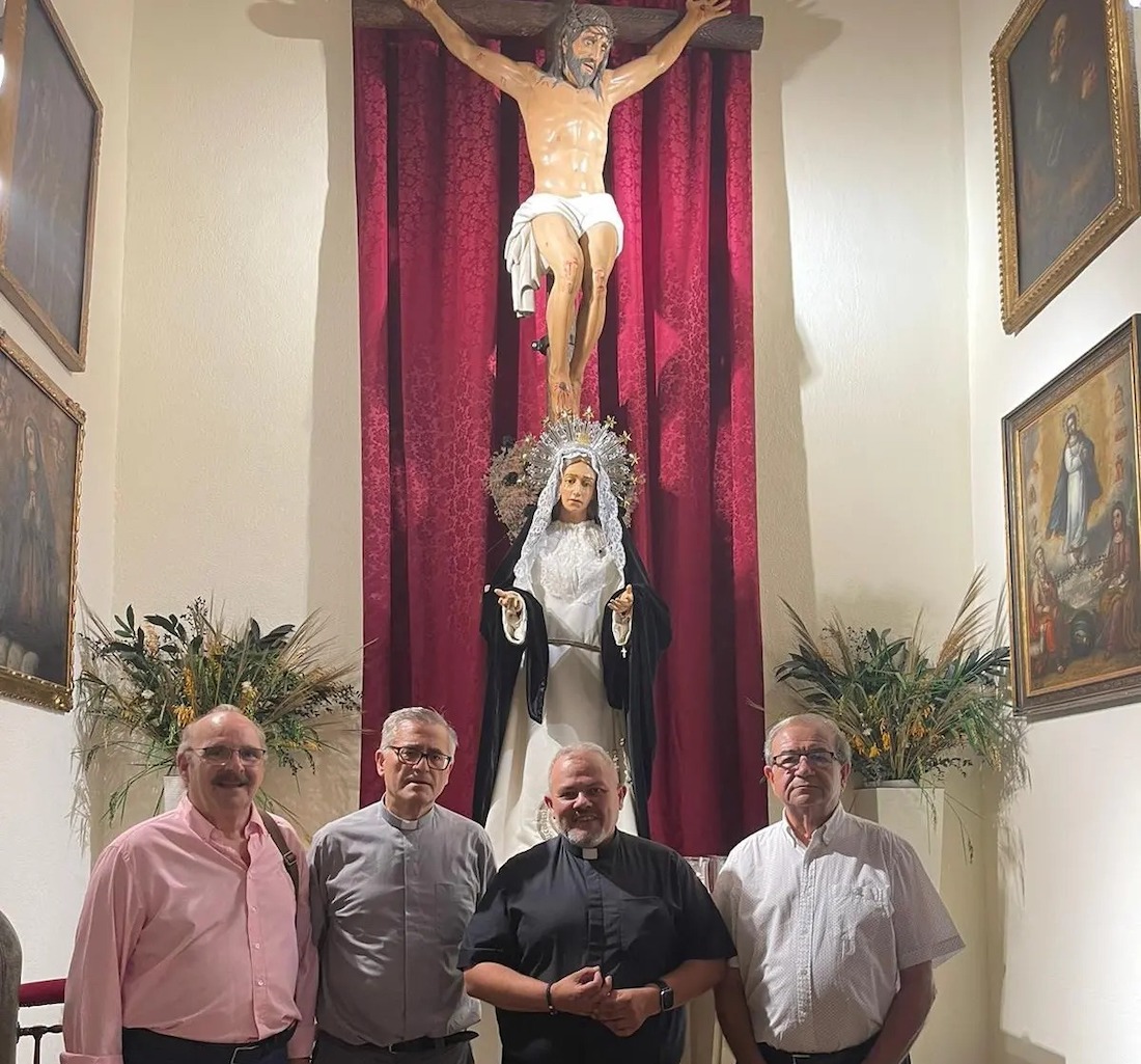 Las cofradías del Prendimiento y del Socorro han estrenado hermanos mayores y casi todas las agrupaciones californios han tenido o tendrán cita con las urnas, por donde también han pasado varios grupos marrajos, incluidos los dos que tienen a los presidentes más veteranos. En la foto, Javier Pavía Galán (primero por la derecha del lector), quien conducirá a los hermanos del Socorro los próximos cuatro años, junto al capellán de la hermandad, Lázaro Gomariz.