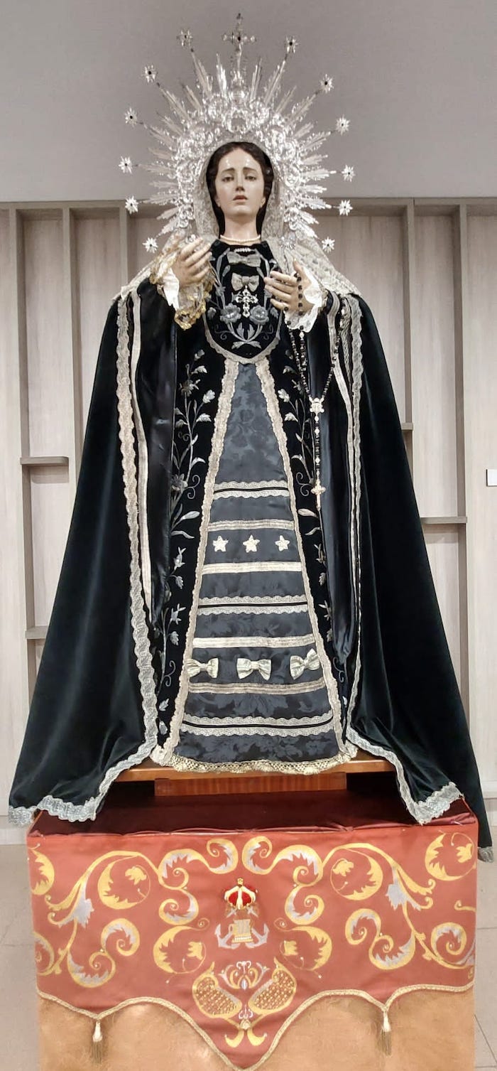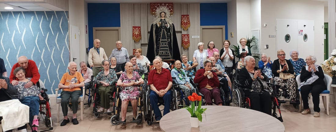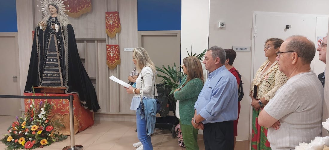 La imagen de María Santísima está desde ayer en la residencia y centro de día Orpea, en la primera ocasión que el 'Rosario de las antorchas' partirá desde un lugar distinto a la iglesia de Santa María, que sí será el punto de destino. Será esta tarde a partir de las siete y media.