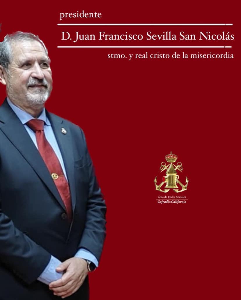 Juan Francisco Sevilla San Nicolás, tras consumarse el proceso electoral, continúa en la presidencia de la agrupación california, cargo al que accedió hace cuatro años relevando a Manuel Baños Salmerón, quien lo había ocupado desde la primera década del presente siglo. En la foto, ambos posan en la sala capitular de la Cofradía de Cristo en el Paso del Prendimiento con el hermano mayor, Pedro Ayala.