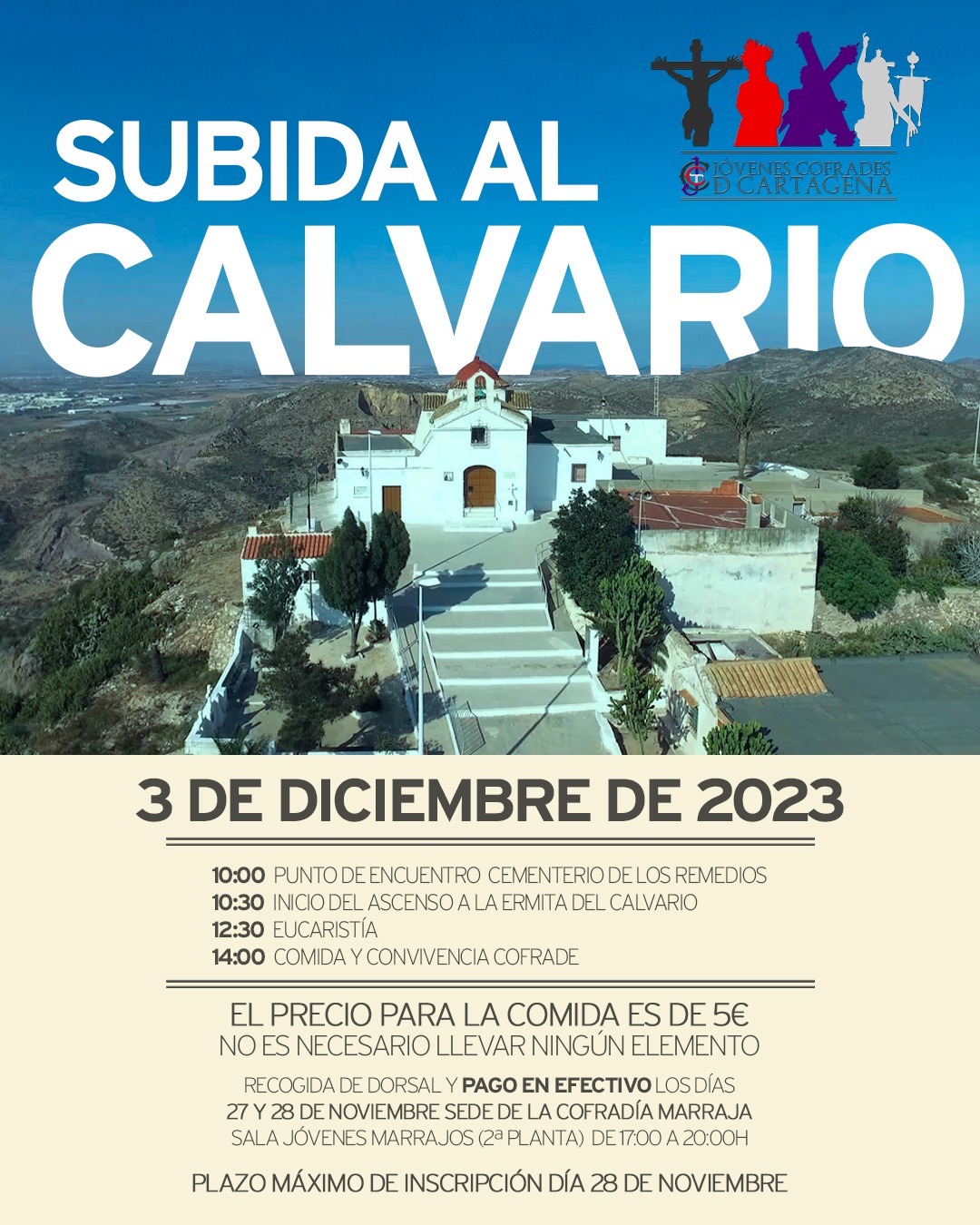 Organizado por Jóvenes Cofrades de Cartagena, la tradicional actividad senderista hacia la ermita del monte donde se encuentra la Virgen d ela soledad se llevará a cabo el 3 de diciembre, fijándose un plazo máximo para apuntarse hasta el próximo martes día 28, siendo la cuota de 5 euros. En la imagen, una escena de la convivencia del pasado año.
