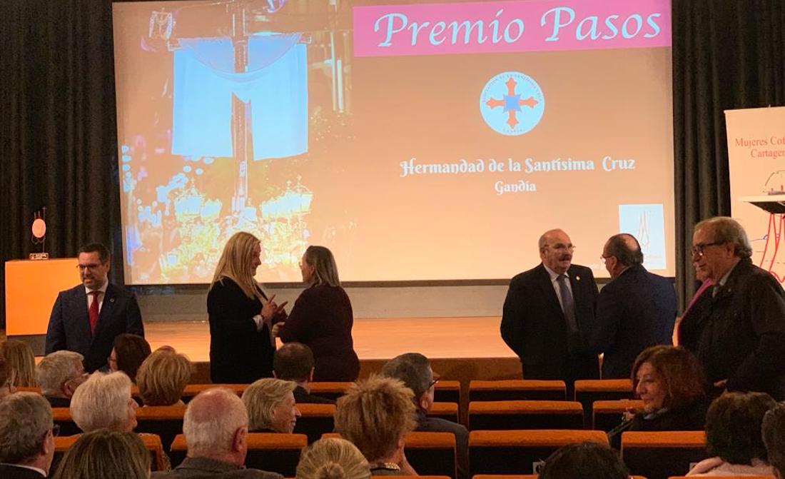 La Asociación Mujeres Cofrades de Cartagena entregó en la noche del sábado el premio Pasos a la Hermandad de la Santísima Cruz de Gandía, en reconocimiento a su labor en pro de “una comunidad cofrade más inclusiva, justa y equitativa”.
