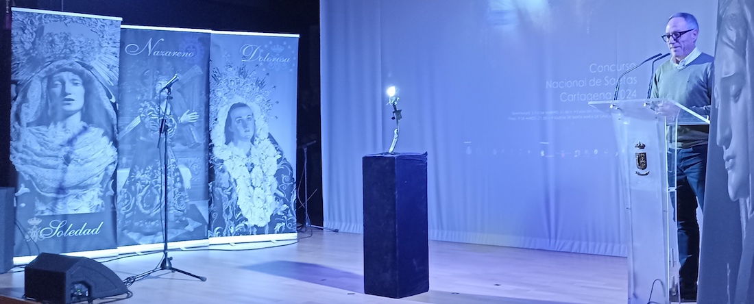 Hemos comenzado el artículo plasmando la temática principal del acto celebrado anoche en el flamente nuevo Museo Minero de La Unión, que no es otra que dar a conocer los artísticos cartel y trofeos del 'X Concurso nacional de saetas de Cartagena 2024' que organiza la agrupación de Portapasos de la Virgen de la Piedad con la colaboración de las agrupaciones de Jesús Nazareno y de Portapasos de la Virgen marraja.