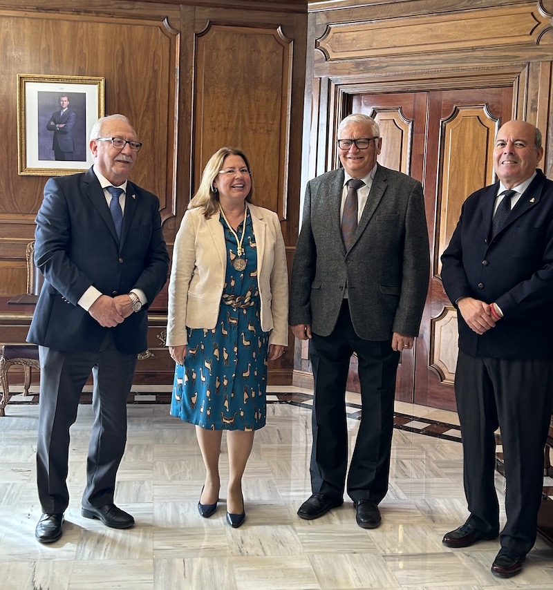 La presidenta de la Asamblea Regional ha recibido al hermano mayor de la Cofradía California de Cartagena, Pedro Ayala, quien le ha hecho entrega de la medalla de mayordomo de la hermandad y la ha animado a vivir y promocionar sus procesiones y actos con motivo de la Semana Santa. Le acompañaban el mayordomo principal, José Blas Martínez, y el mayordomo de protocolo, Juan Cegarra Ruiz.