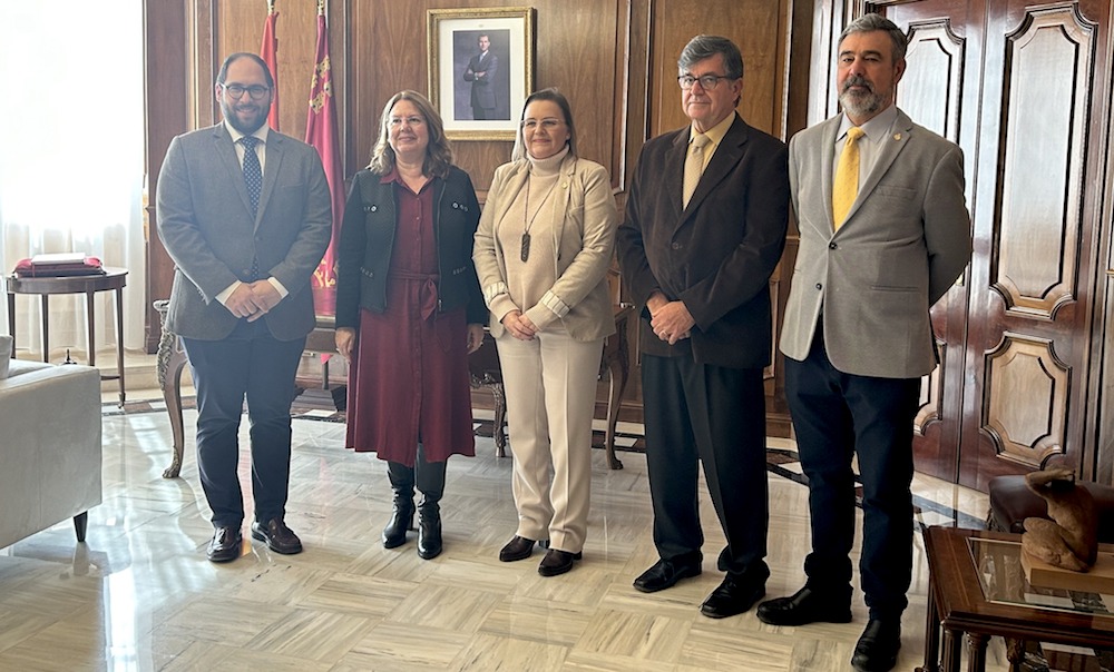 La presidenta de la Asamblea Regional ha recibido a la hermana mayor de la Cofradía Nuestro Padre Jesús Resucitado, Marién García Boj, quien estuvo acompañada por los integrantes de su equipo directivo Pedro Antonio Giménez Saura, primer mayordomo; Francisco Javier González Rodríguez, mayordomo de relaciones Institucionales; y José María Guillén García, mayordomo de protocolo.